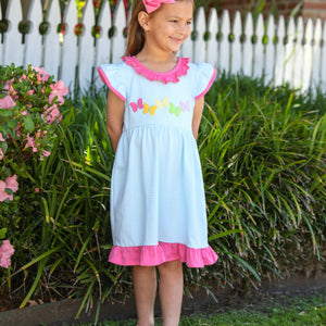 Get ready to flutter by in this adorable Butterfly Short Set. Featuring 5 beautiful butterfly appliques that are perfect for your girl's imagination. The striped top, pink trim and scalloped shorts add a touch of sweetness, while the flutter sleeves add playful movement. Girls will love this quirky and fun outfit!