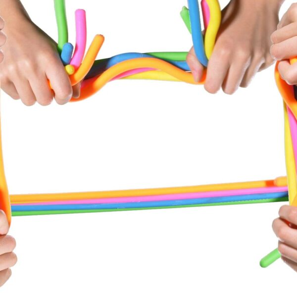 Noodlies fulfill the fun of playing with your food…without the mess! You can squeeze, stretch, knot, or mash these elastic noodles to your heart’s desire. Noodlies are brightly colored in 5 fluorescent tones and offer a unique sensory play experience that creates loads of endless fun. Toss them around with friends or squeeze a handful when you want to mellow out!