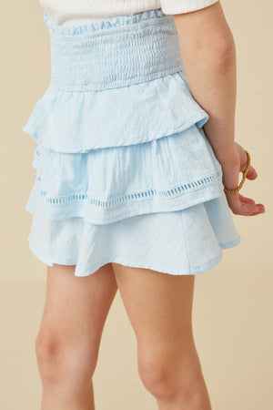 This ruffle shoulder top adds a touch of whimsy with its smocked details and ruffle sleeve. Perfect for a fun and flirty look, this top will make you the center of attention wherever you go. Embrace your playful side with this unique and stylish piece.