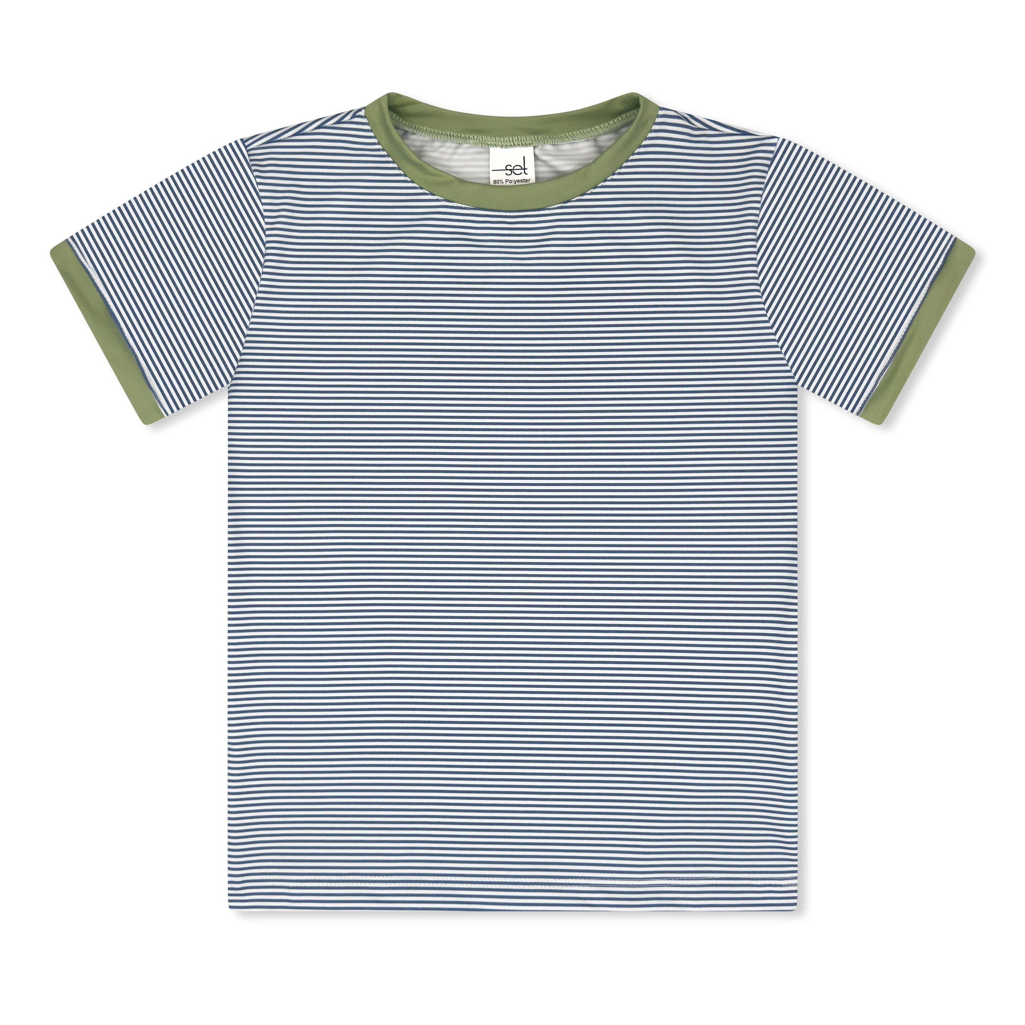 Set Athletics- Bradley Basic Tee - Baton Rouge Blue Ministripe, Pistachio Green (CORE)- Blue