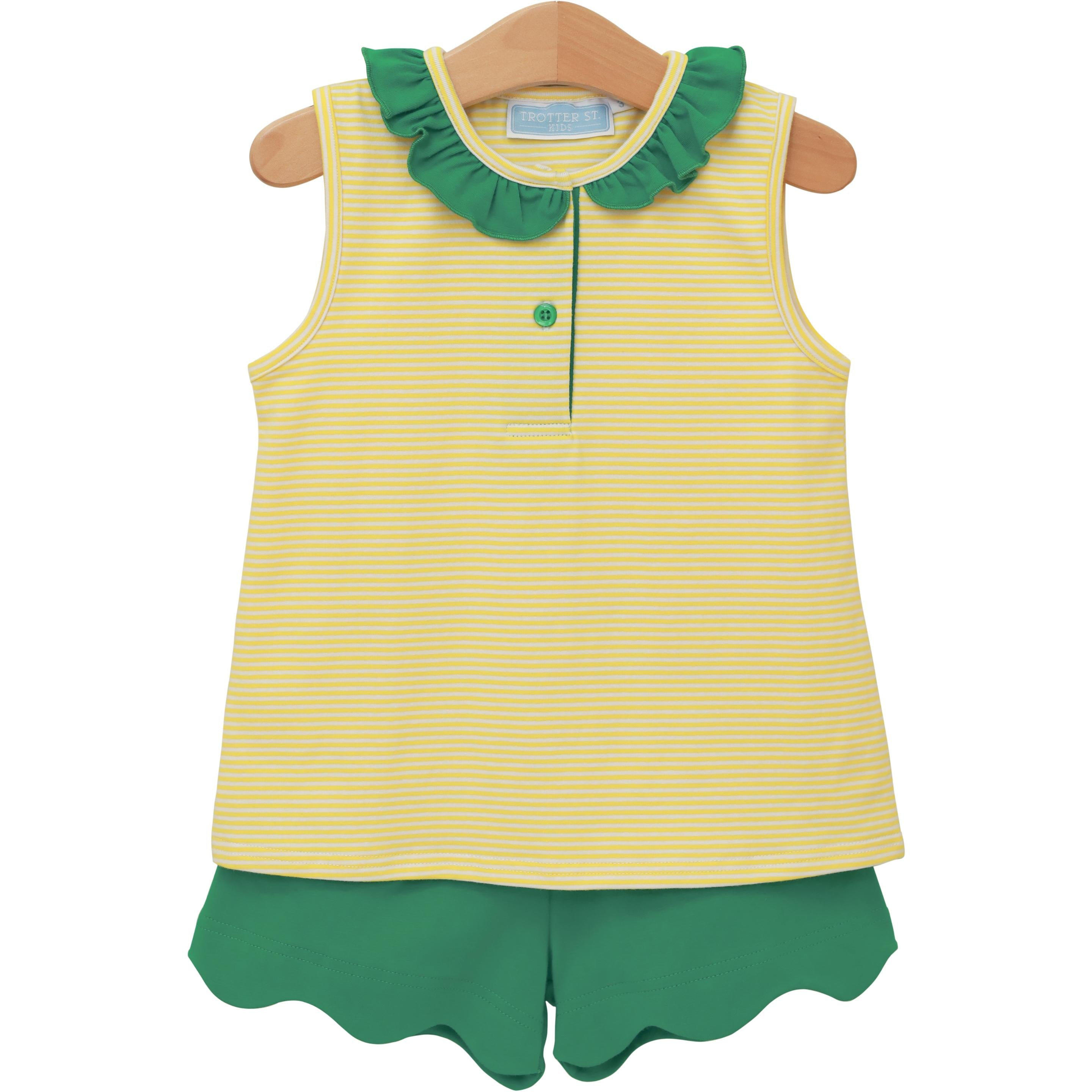 Trotter Street Kids- Nora Short Set- Yellow Stripe/Green