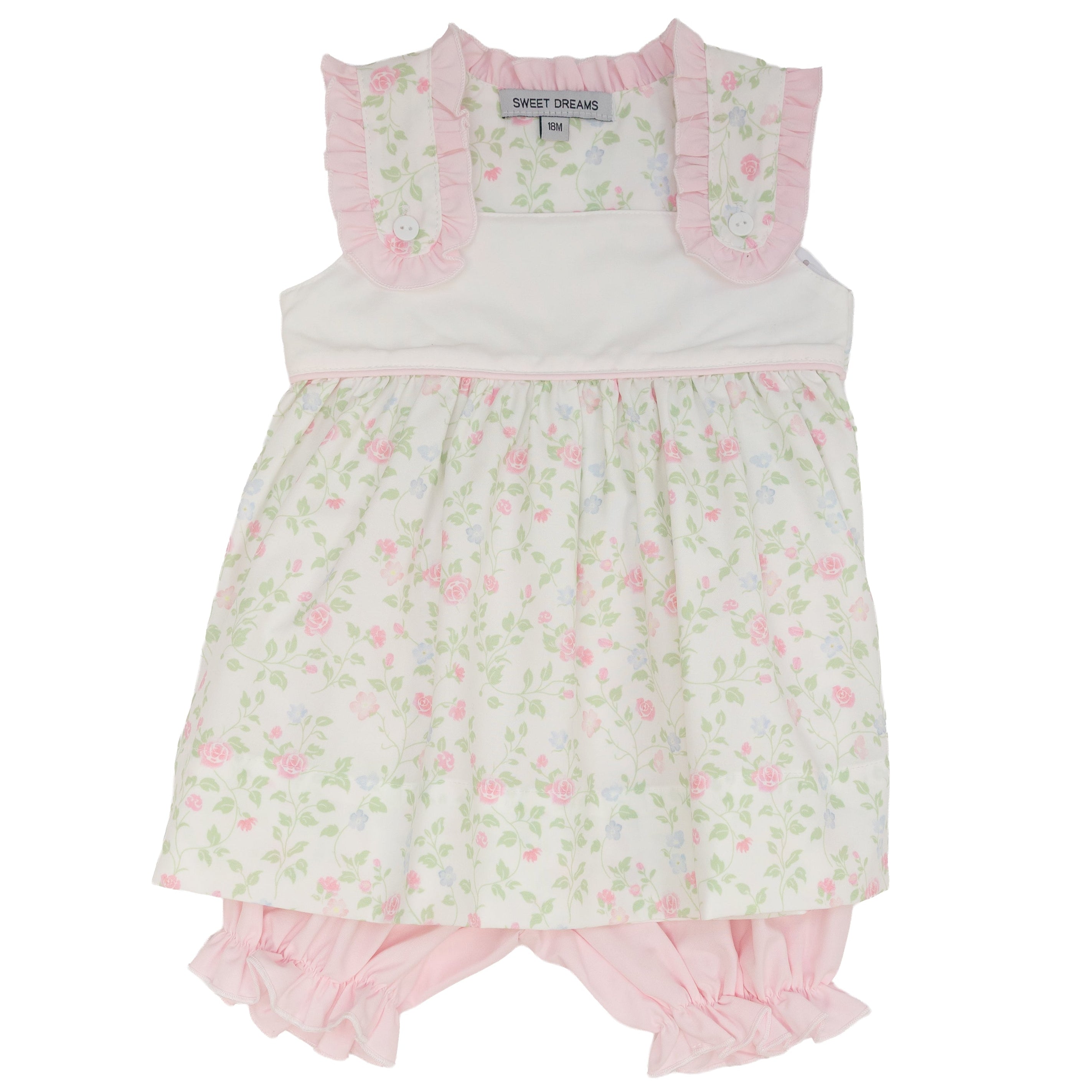 Sweet Dreams- Pink Ruffle Trim Printed Pink/Blue Floral