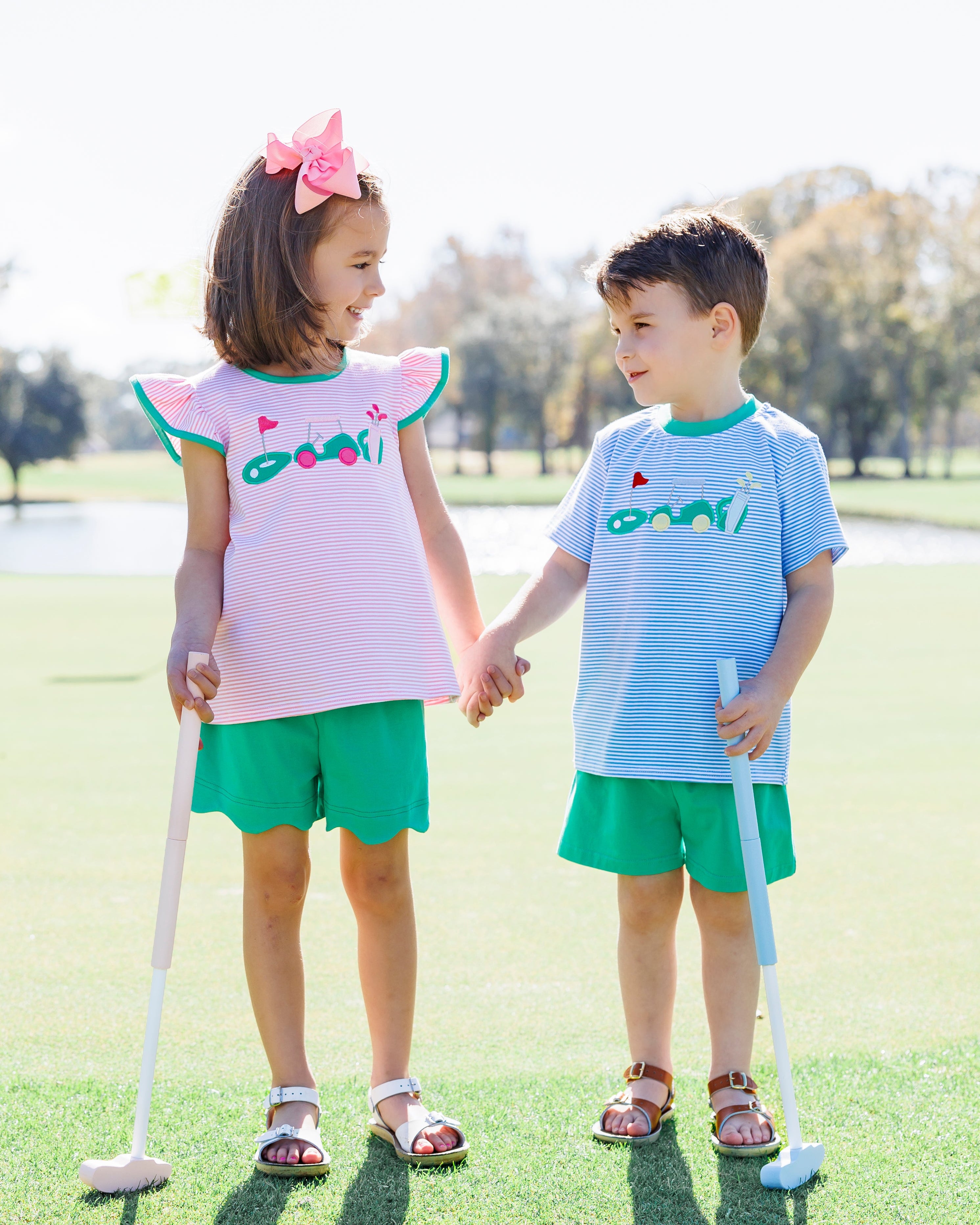 Score a hole-in-one with our playful Gone Golfing Scallop Short Set!