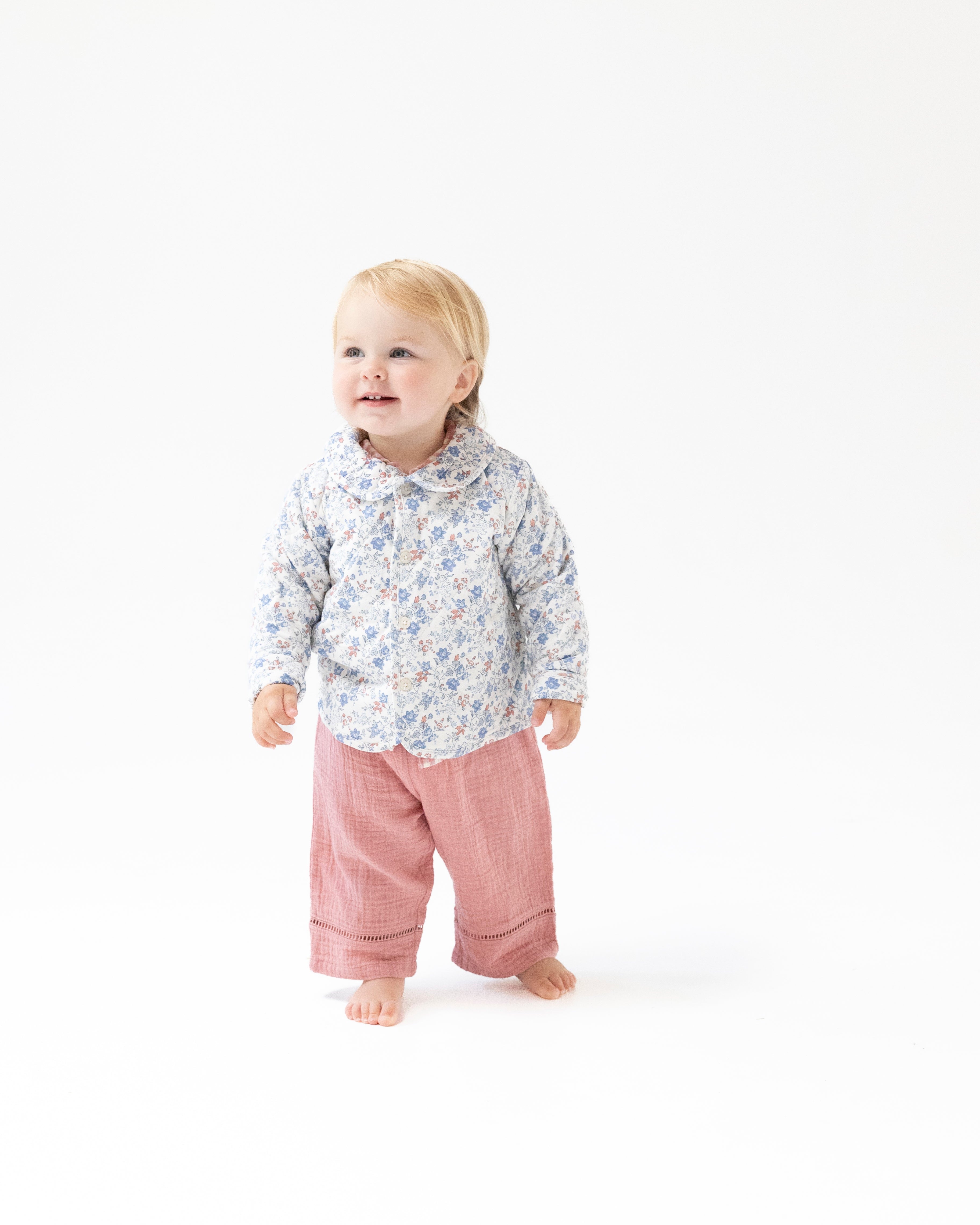 Angel Dear- Country Girl Floral - Quilted Jacket W/ Peterpan Collar- Ivory/Mellow Rose