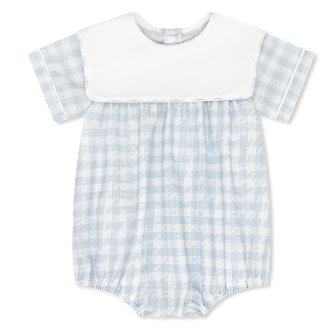 Handsome and timeless, the Christian Bubble in Baldwin Blue Buffalo Check is a classic choice for Easter, church, or any special occasion.