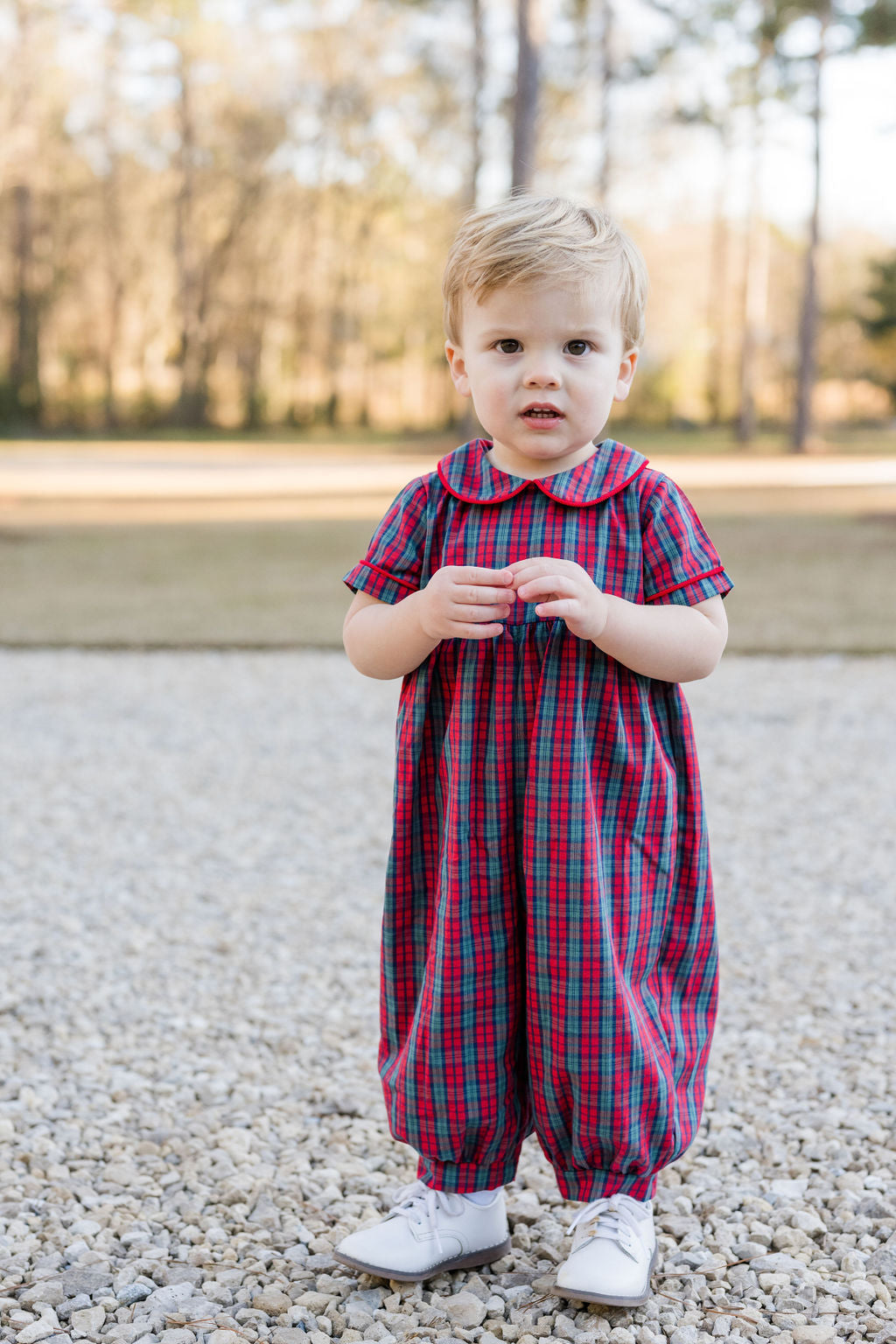 Have a holly jolly Christmas with the Red Christmas Plaid James Romper. This playful romper features a collar. Get ready for this holiday season! Matching Sibling Outfits Available!