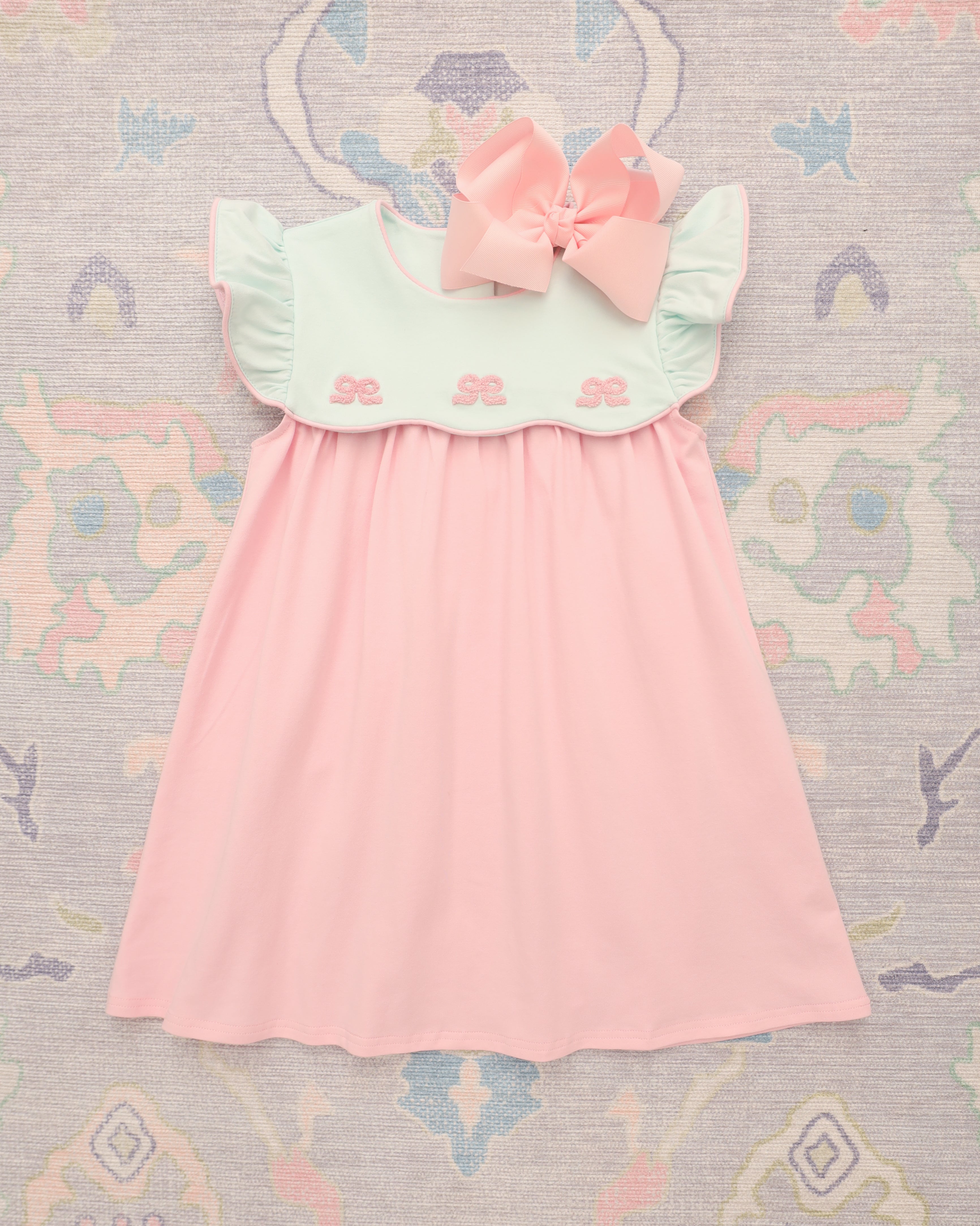 Jellybean by Smock Candy- Frilly Bow French Knot Bow Scallop Dress