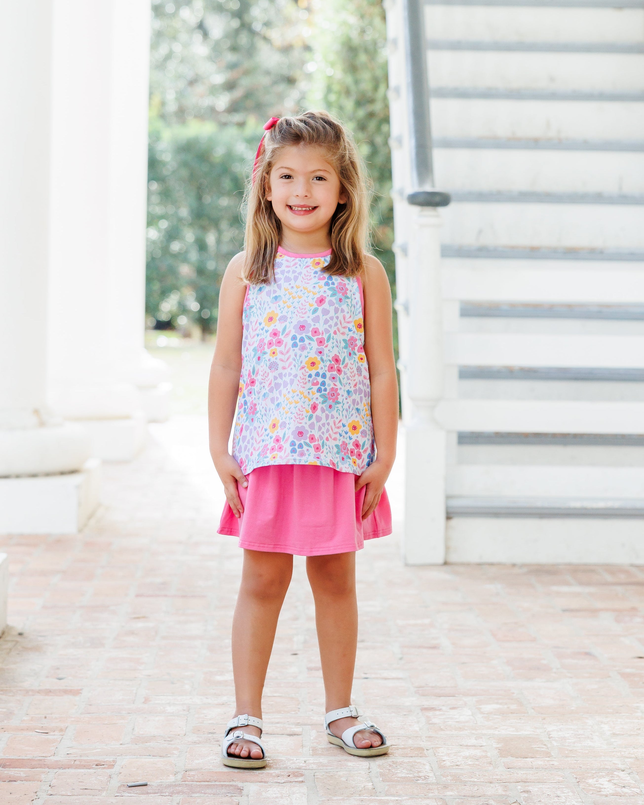 Your little girl will shine with soft blooms and bold confidence with our Poppies and Petals Bow Back Skort Set!
