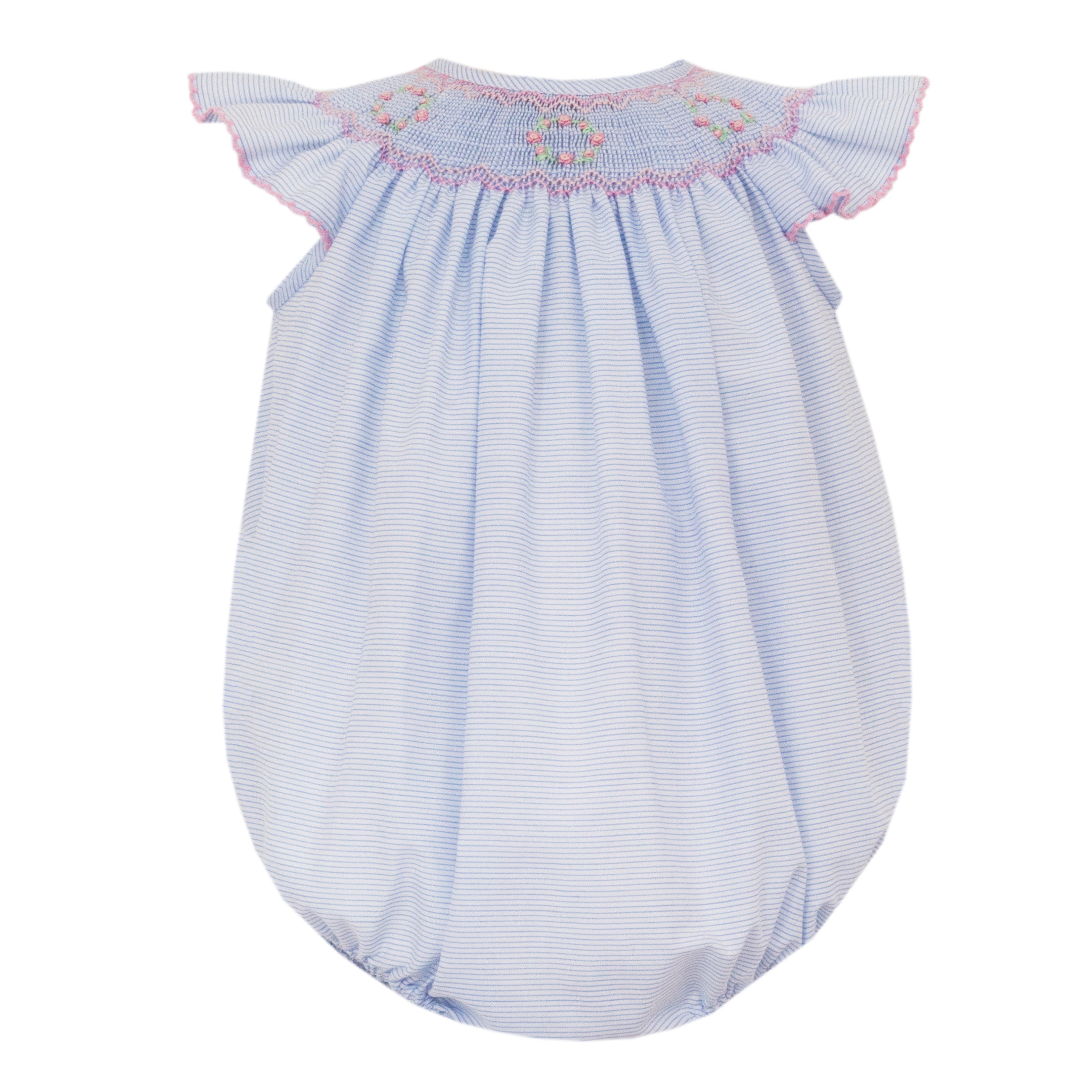 Petit Bebe- Riley - Blue Tiny Stripe Angel Wing Bishop Bubble