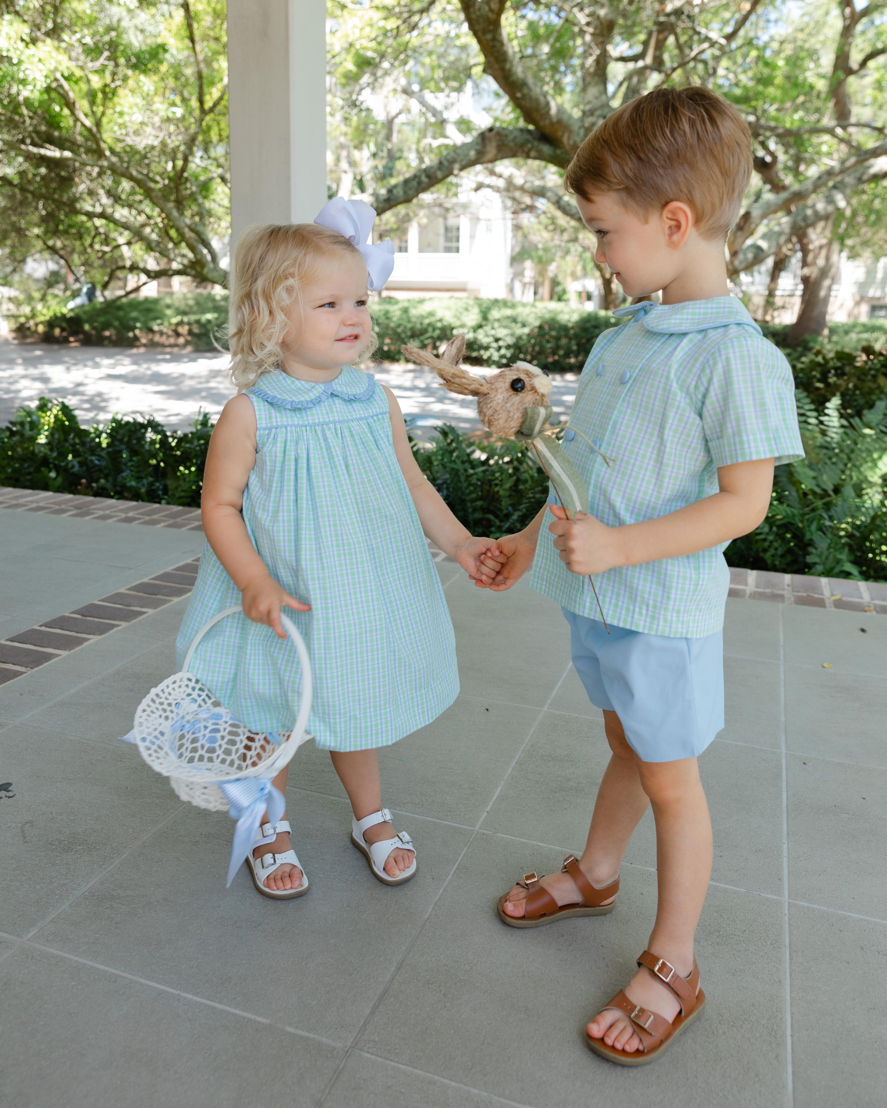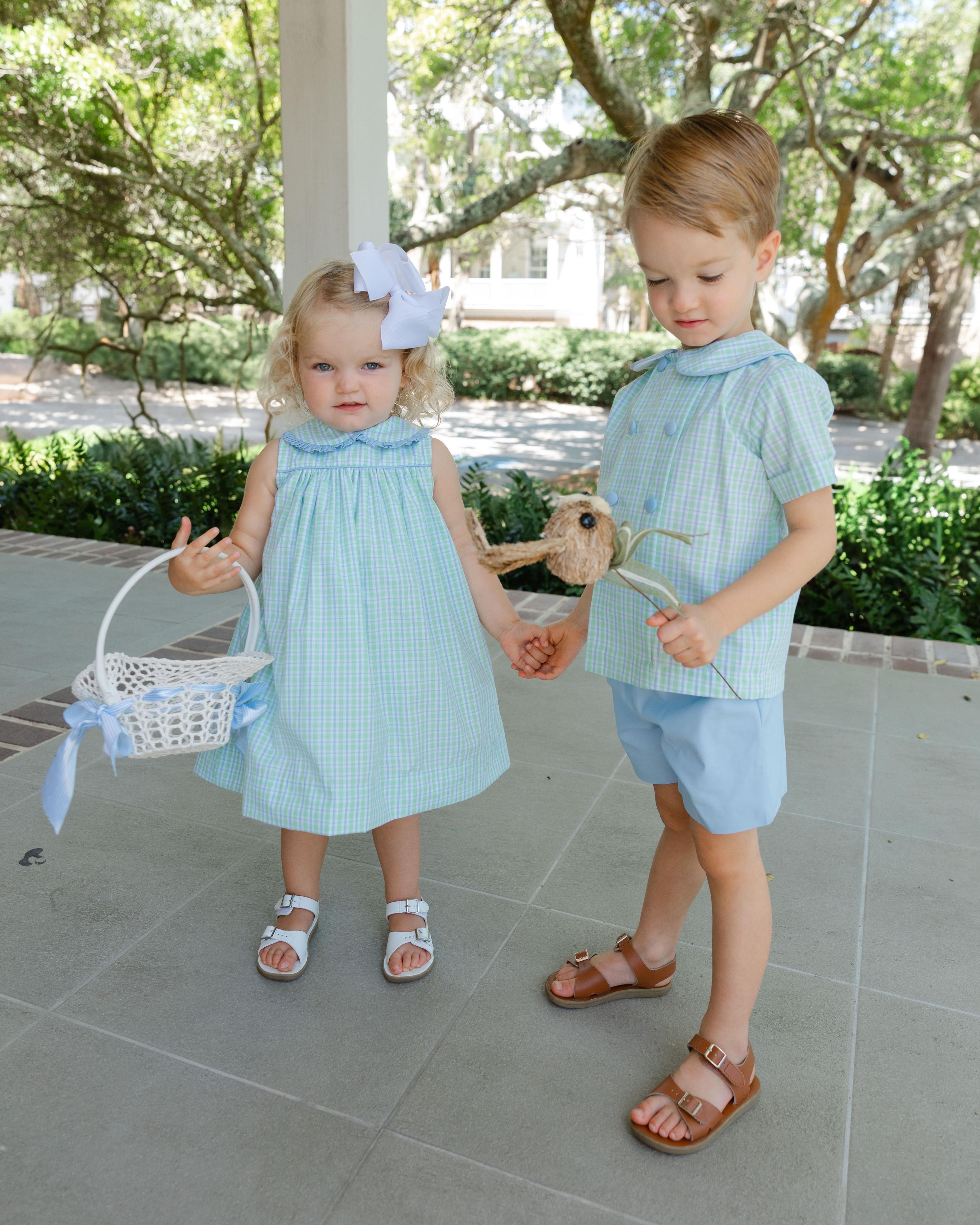 The Bridgewater Plaid Float Dress pairs timeless color with refined design. Its soft blue-and-green plaid and fabric flows easily with each step. The cotton fabric’s texture adds quiet dimension, making it both everyday-easy and portrait-perfect. A lasting favorite for spring.