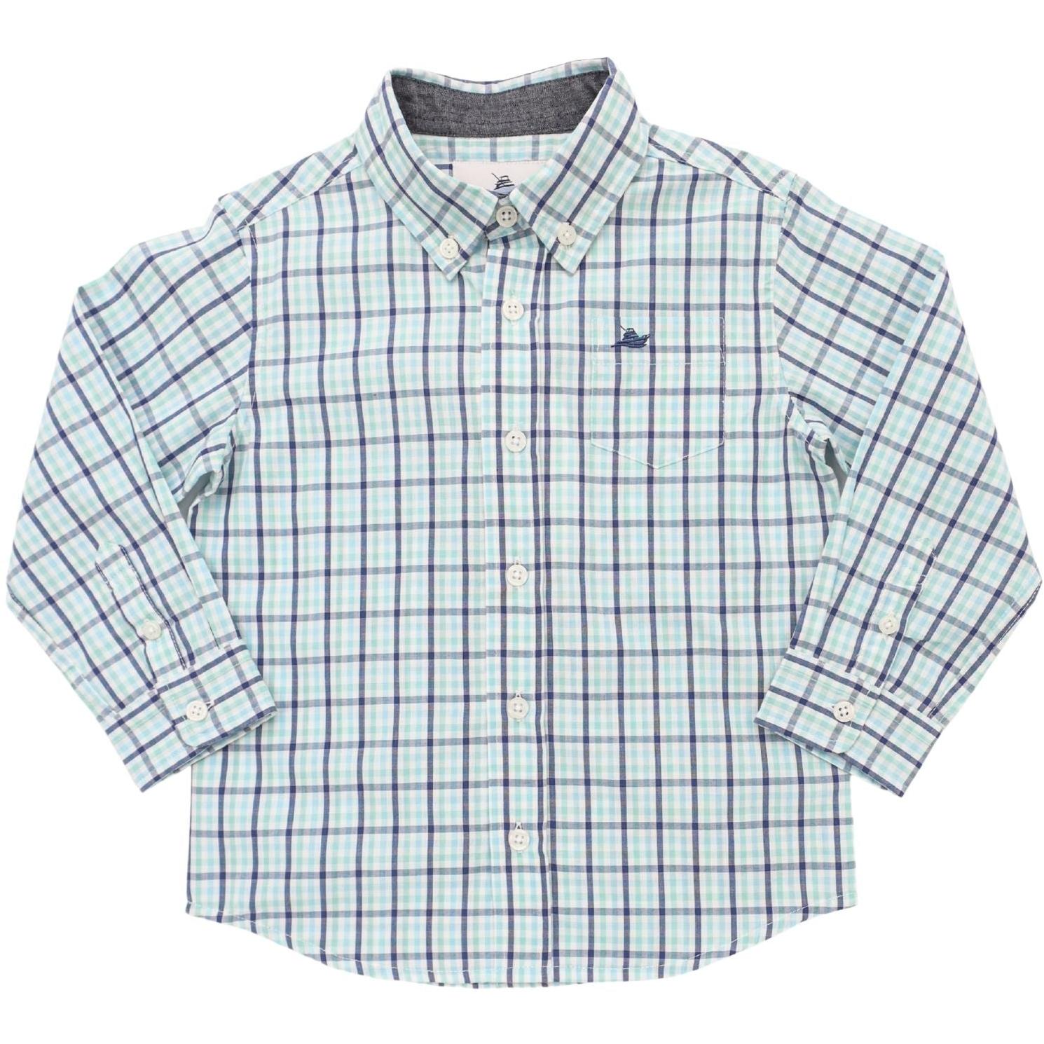 This long sleeve, Dress Shirt- Navy/Ocean Blue is perfect for your handsome boy! Its a year-round style, and comes in soft, poly/cotton fabric. Boat embroidered on chest pocket. Pairs perfectly with the Pull on Pants!