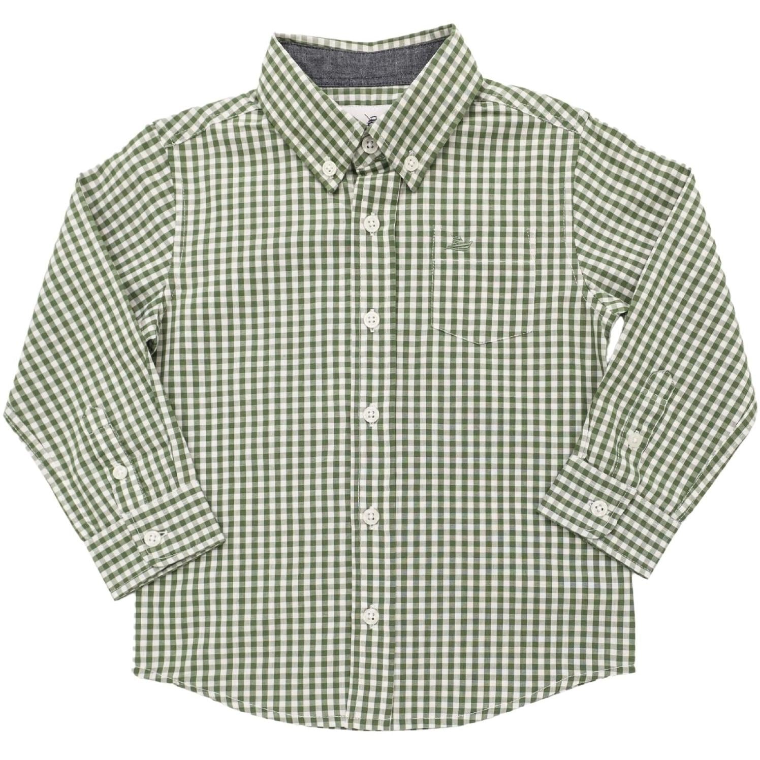 This long sleeve, Dress Shirt- Vineyard Green/White is perfect for your handsome boy! Its a year-round style, and comes in soft, poly/cotton fabric. Boat embroidered on chest pocket. Pairs perfectly with the Pull on Pants!