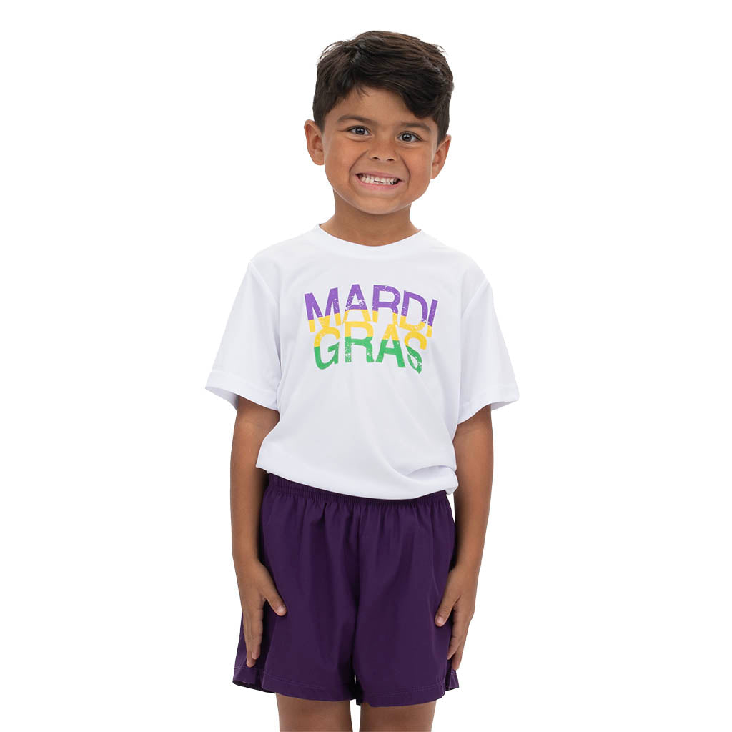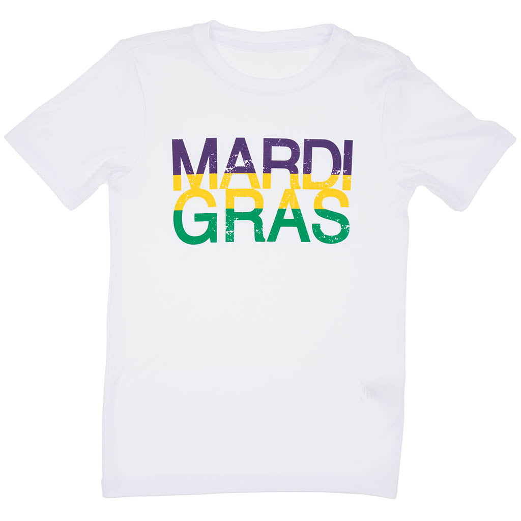 Celebrate the season in this distressed white dri-fit tee, perfect for staying cool while channeling festive Mardi Gras vibes. The breathable fabric keeps you comfortable all day long.