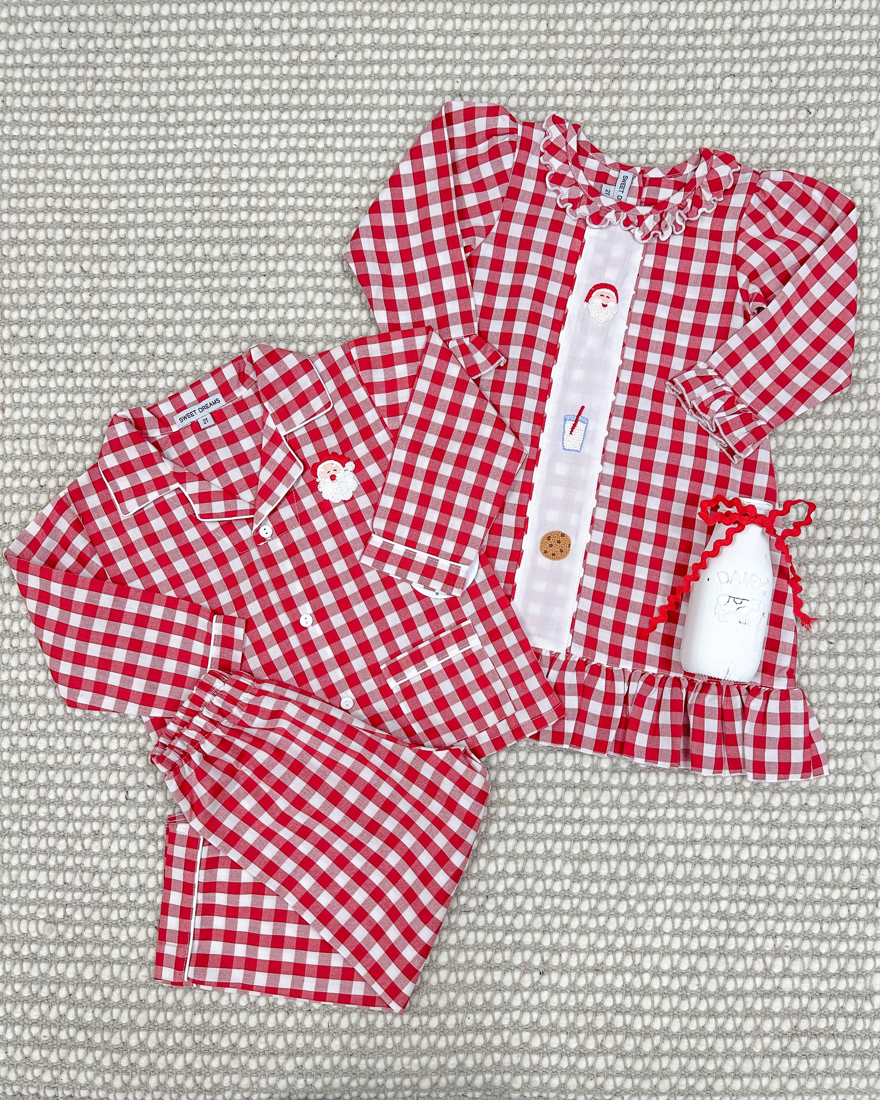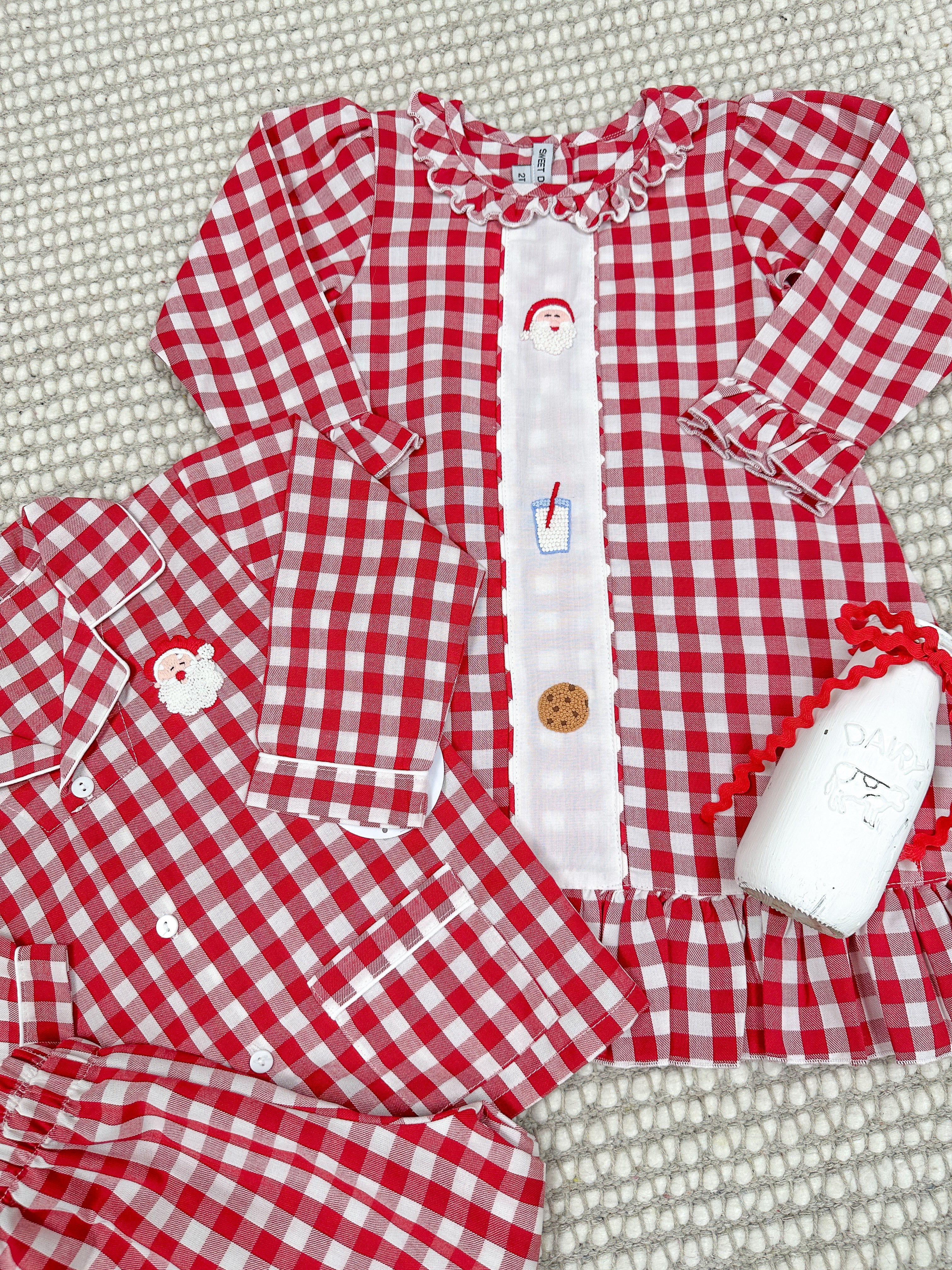 Sweet Dreams- GINGHAM SANTA EMB PJS