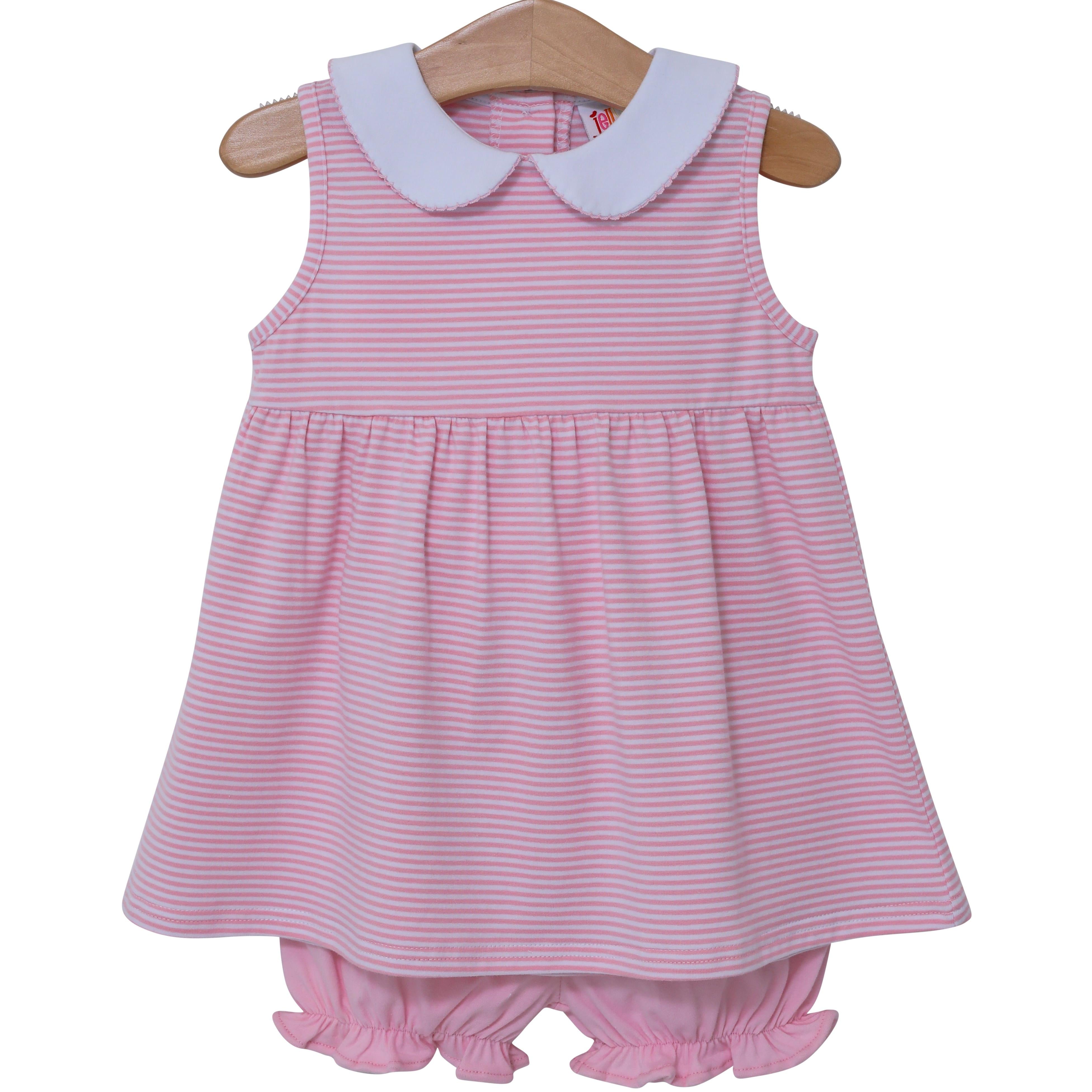 Charlotte Sleeveless Bloomer Set- Light Pink Stripe