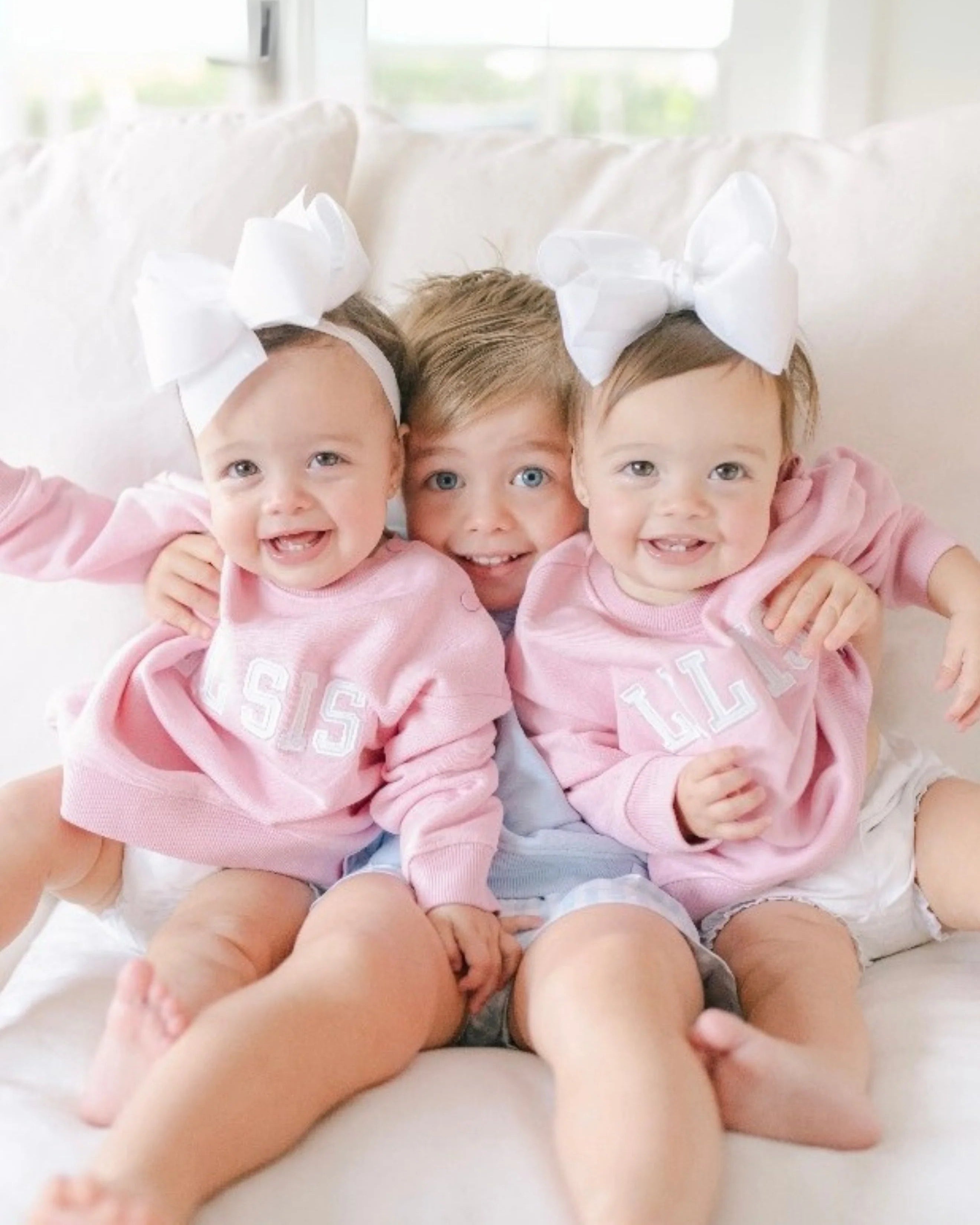 He'll wear his role with playfully polished pride in this comfortable, casual sweatshirt made for every big brother. Features super-soft fleece and classically cute tackle twill letter details.