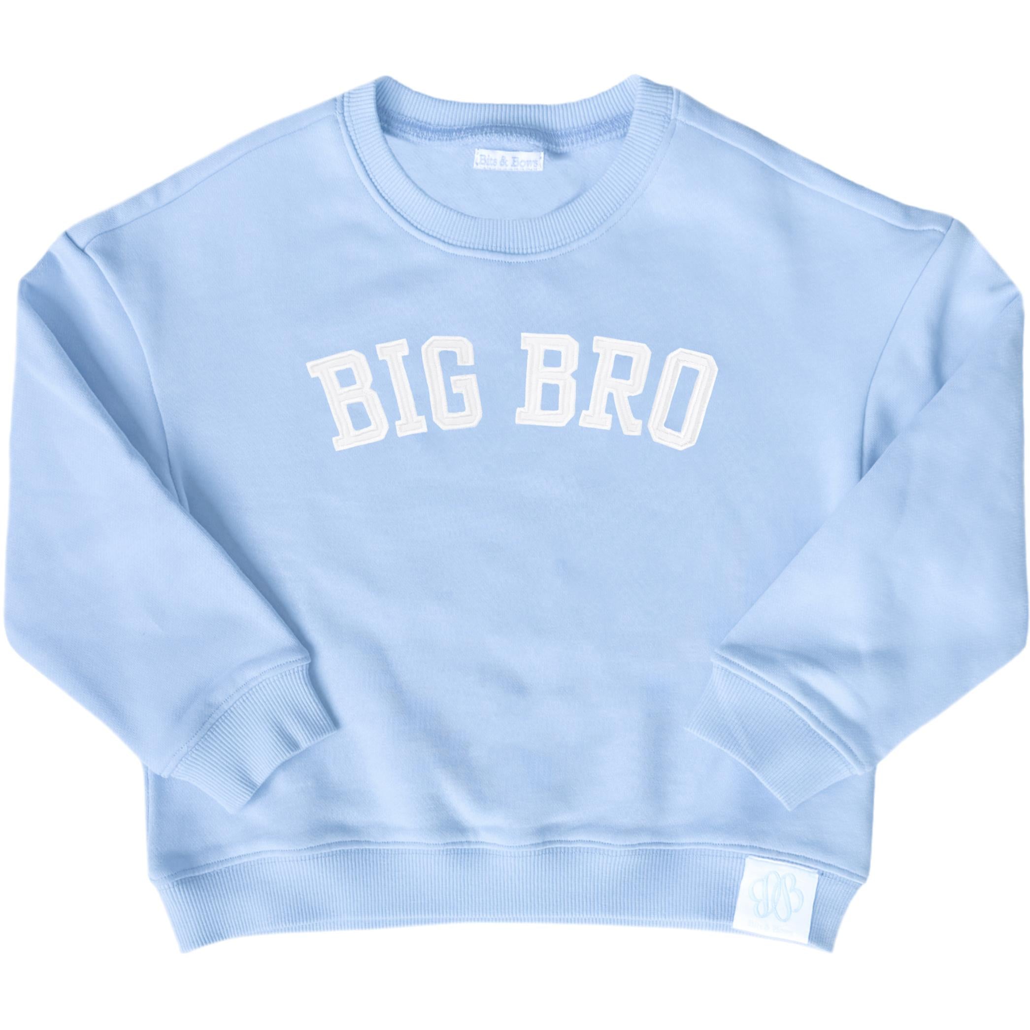 - Blue sweatshirt with white "Big Bro" applique