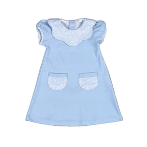 • With blue bloomers and scalloped collar