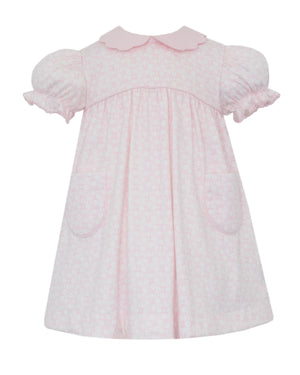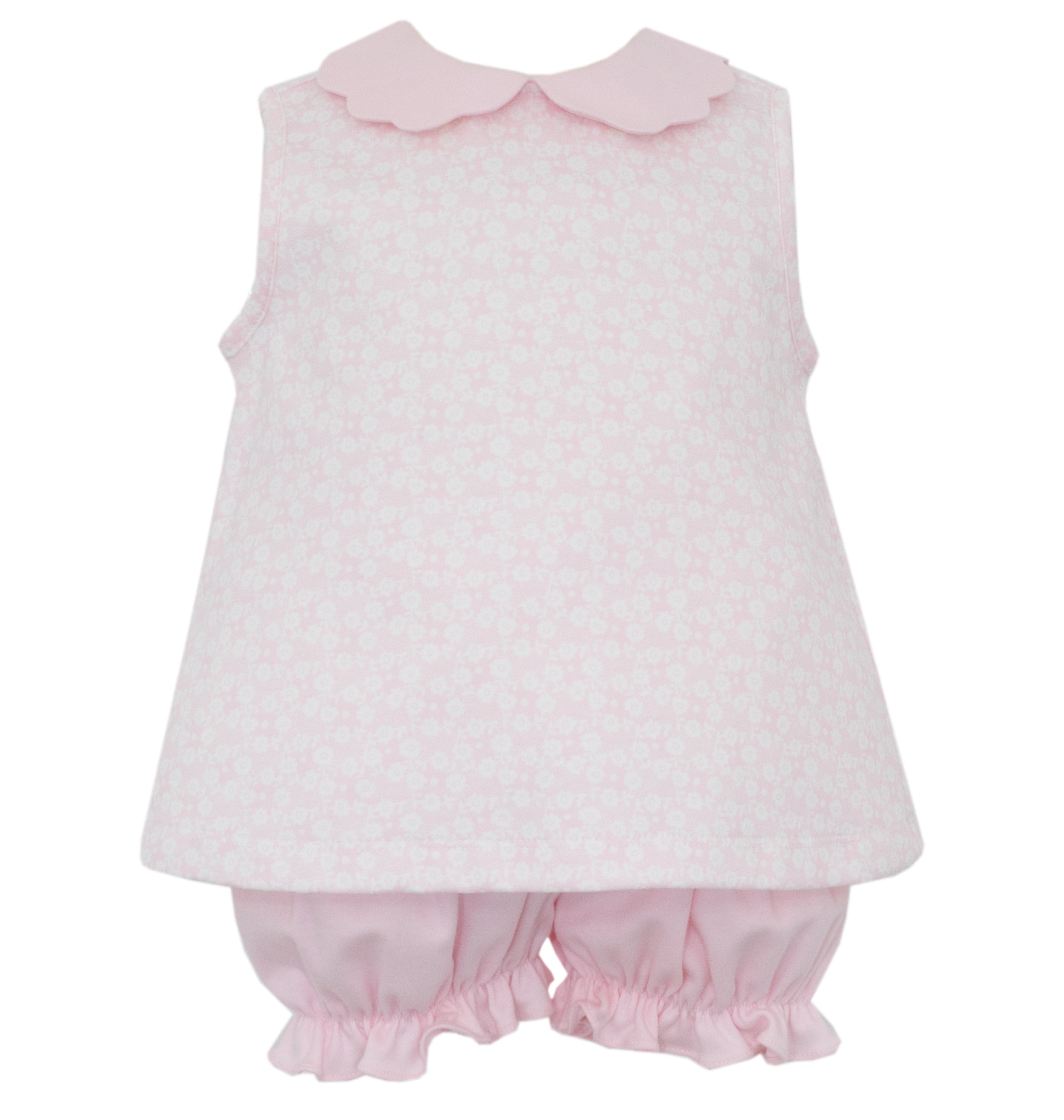 Petit Bebe- Group 4 - Pink Knit Floral Sleeveless Bloomer Set W/ Pink Scalloped Collar