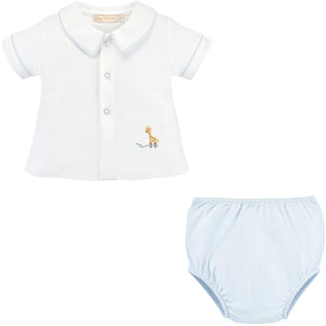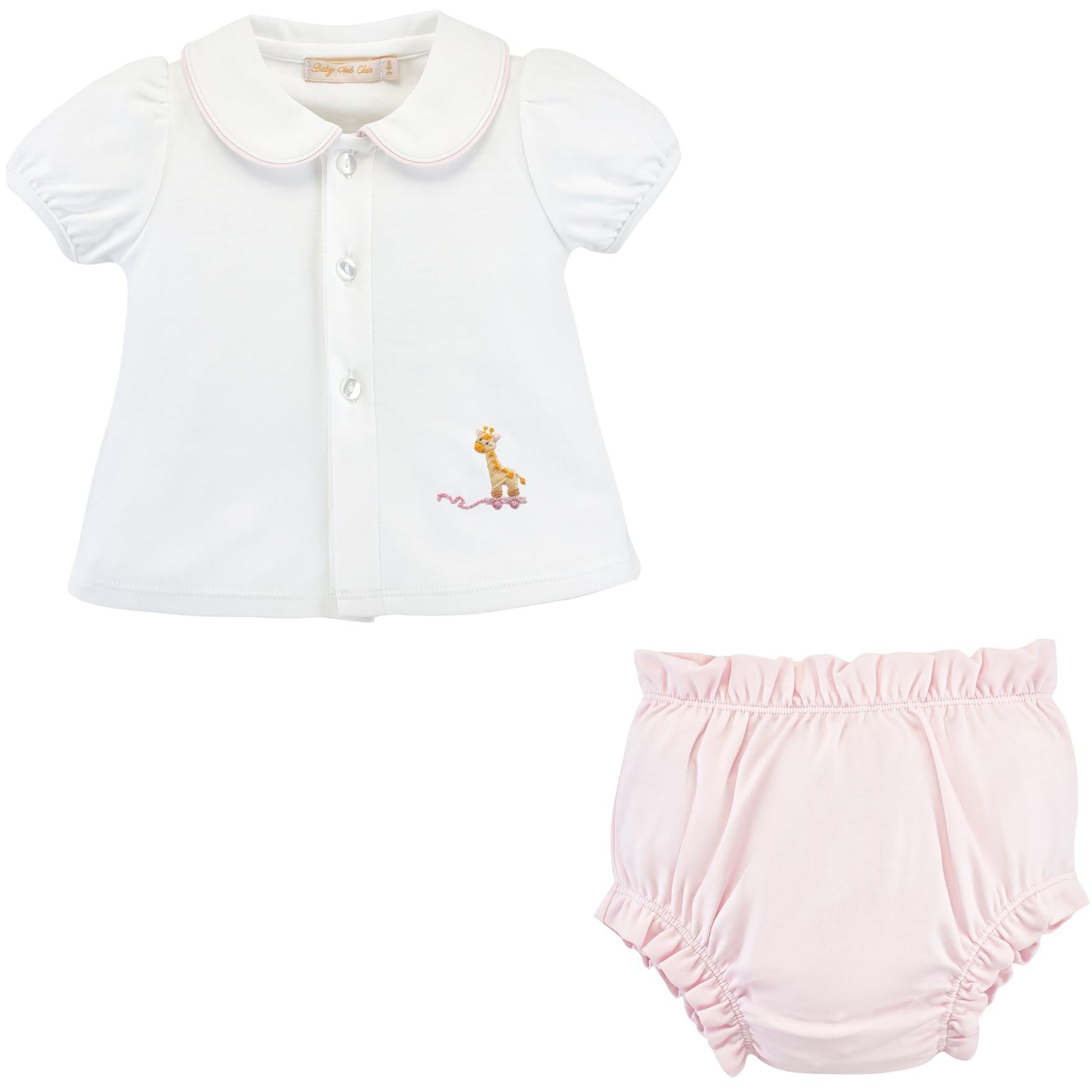 Baby Club Chic- Tiny Giraffe - Girl White Tee And Pink Diapper Cover Set- White