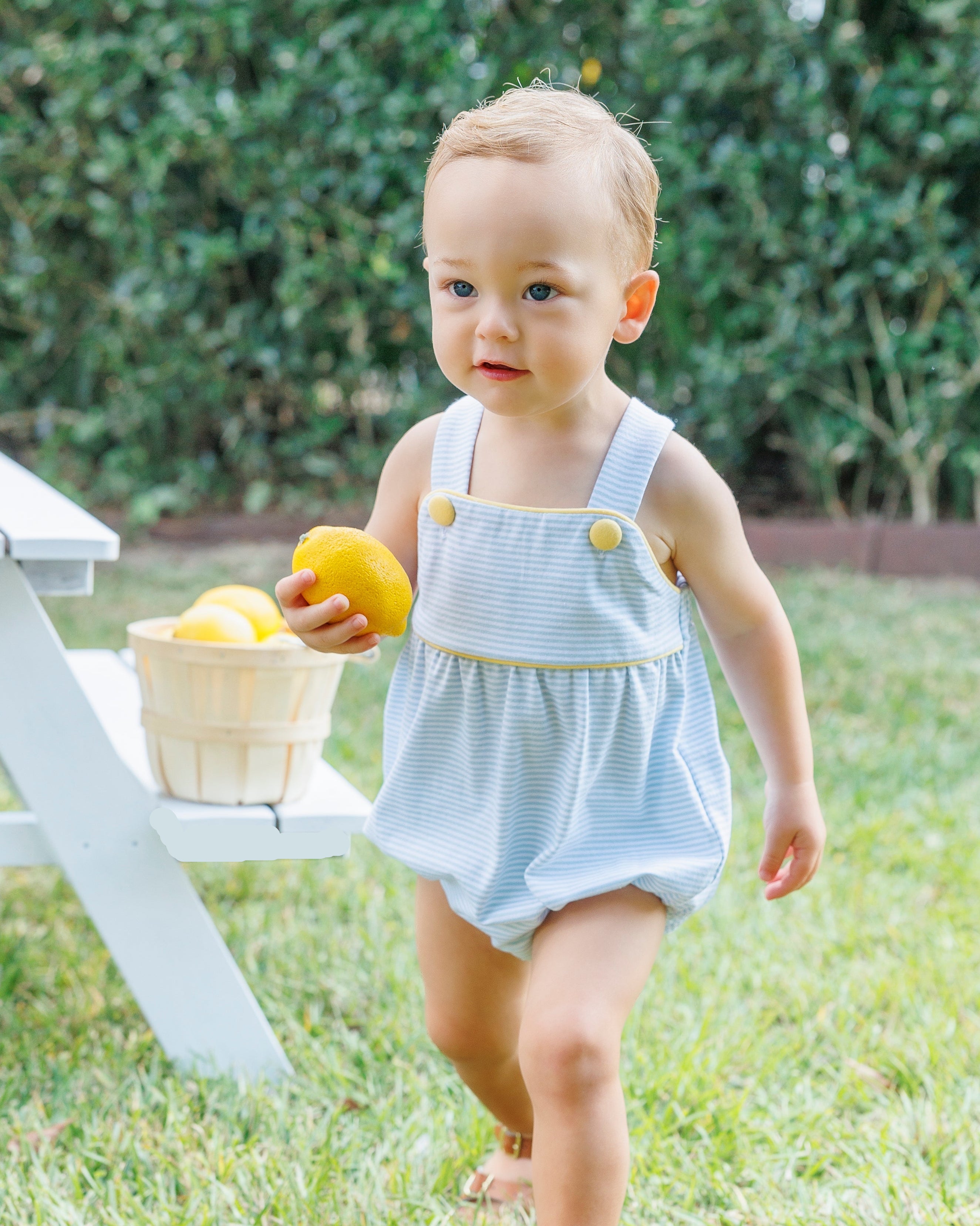 Jellybean by Smock Candy- Luke Sunsuit - Light Blue Stripe and Yellow
