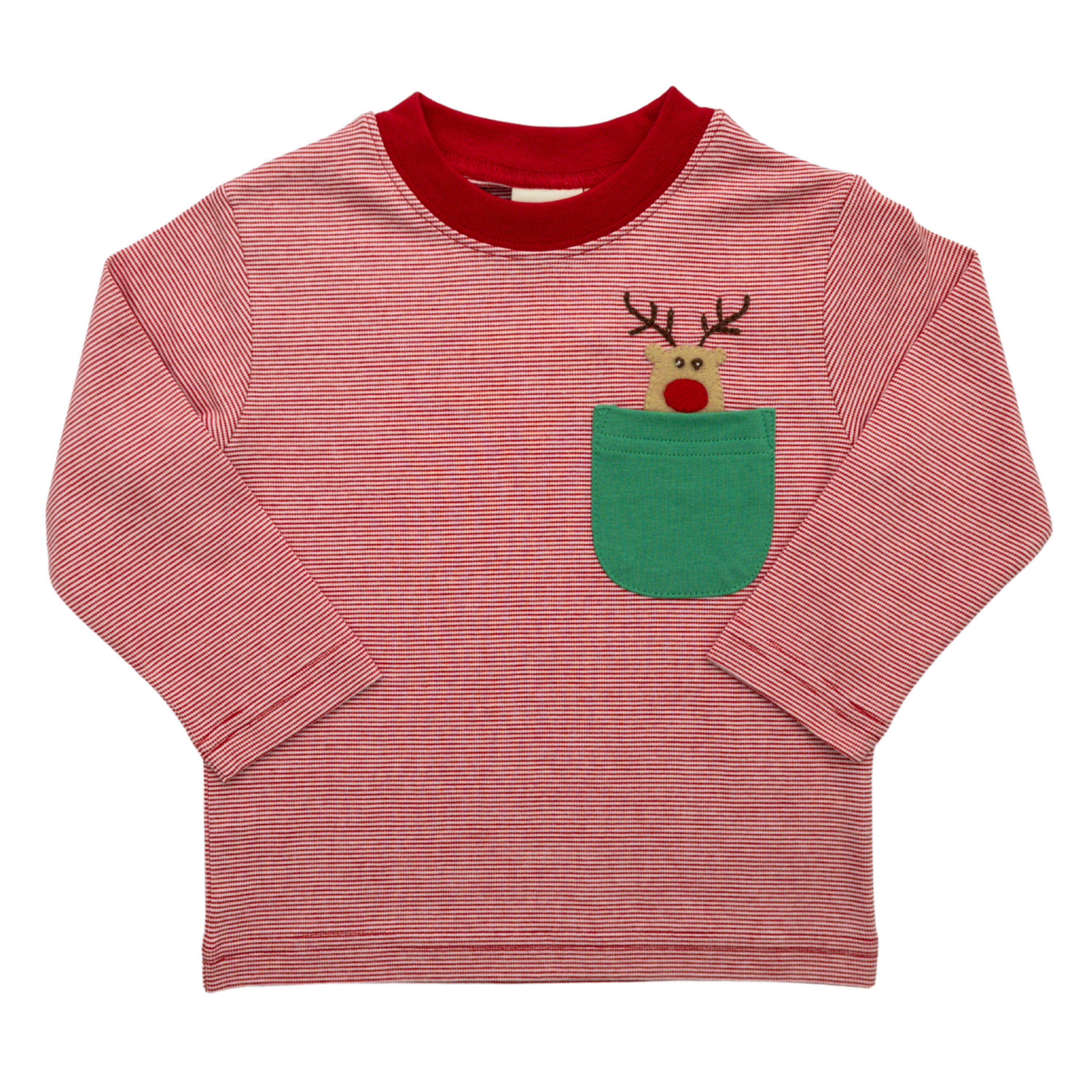 Your little guy will be ready to peek into the holidays with this Rudolph Pocket T-Shirt