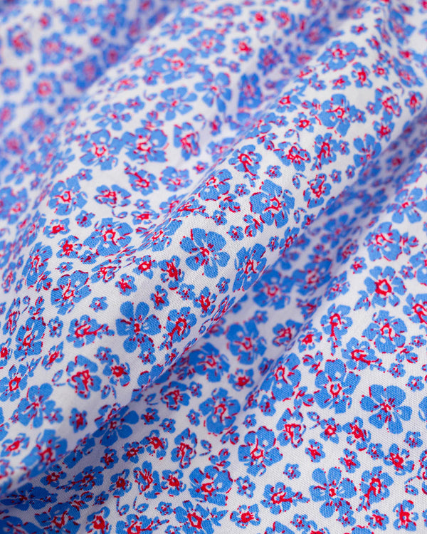 The Blue Floral Fiesta Dress radiates joy with its vibrant floral patterns and playful design. Crafted in a breezy blue fabric, this dress features a twirl-worthy skirt and delightful ruffle details, perfect for festive occasions and sunny days. Let your little one celebrate in style with this enchanting and comfortable dress.
