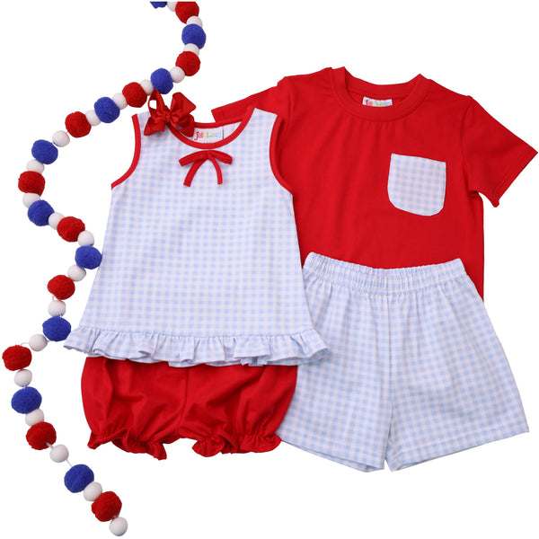 Blue Gingham/Red Pocket Short Set