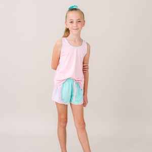 A sweet basic, perfect all year round! The Bridget Basic Tee in Cotton Candy Pink athleisure is a must-have in all the prints and colorways! Did you know SET tops are designed to match and match with all the bottoms for a stylish look?