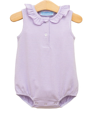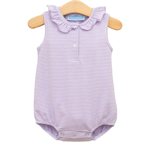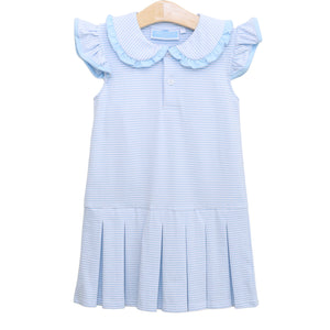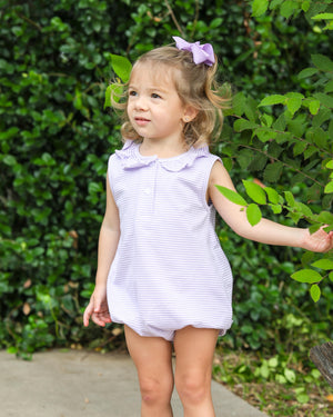 Twirl into style with the Camilla Dress in Lavender Stripe! This playful dress features a ruffle peter pan collar, flutter sleeves, and a drop waist with a pleated skirt. Perfect for your little fashionista, this girls' dress adds a touch of whimsy to any occasion.