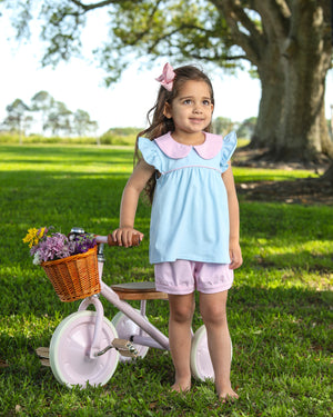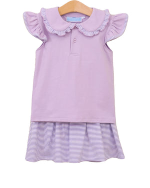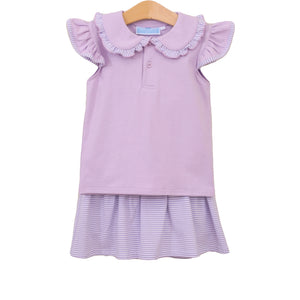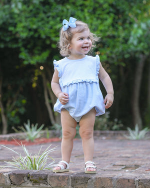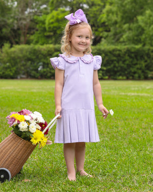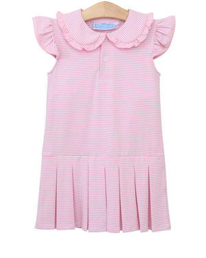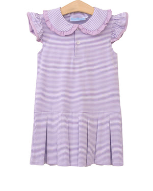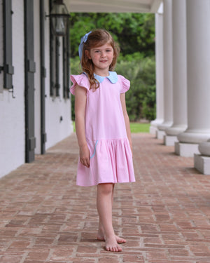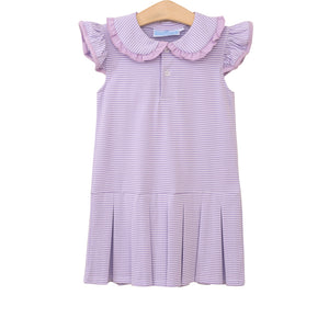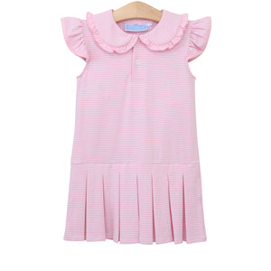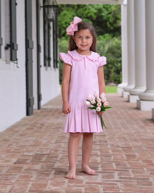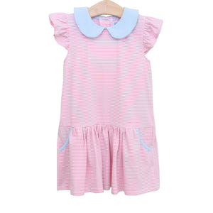 Twirl into style with the Camilla Dress in Light Blue Stripe! This playful dress features a ruffle peter pan collar, flutter sleeves, and a drop waist with a pleated skirt. Perfect for your little fashionista, this girls' dress adds a touch of whimsy to any occasion.