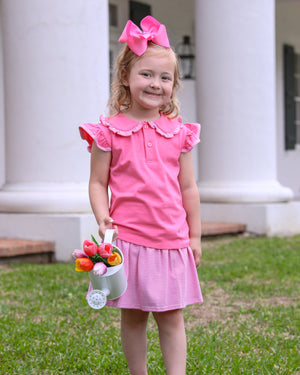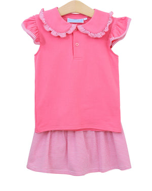 Twirl into style with the Camilla Dress in Light Pink Stripe! This playful dress features a ruffle peter pan collar, flutter sleeves, and a drop waist with a pleated skirt. Perfect for your little fashionista, this girls' dress adds a touch of whimsy to any occasion.