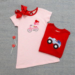 Show off your playful side with this Crane w/ Hearts Shirt! Made from airy, comfortable Pima cotton, this short sleeve shirt features a fun and quirky design of a crane lifting crochet hearts. Perfect for valentine day or any casual occasion!