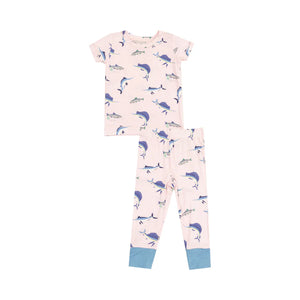 Deep Sea Fishing Pink Peplum Biker Short Set