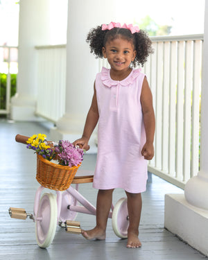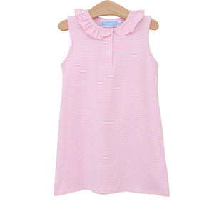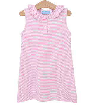 Introducing the Nora Tank, a fun and playful addition to any girl's wardrobe. This sleeveless top featuring a cute ruffle collar and a trendy light pink stripe design. Perfect for a day at the beach or a casual outing.