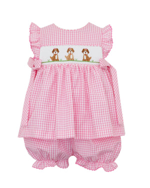 Get ready for cuteness overload with the Puppies Knit T-Shirt! Featuring a trio of playful puppies in smocking detail, this Pink Stripe T-Shirt with ruffle sleeves is perfect for your girl. Comfortable and stylish, this shirt will have her looking as adorable as the puppies featured on it!