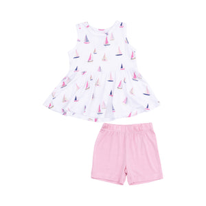 Angel Dear- Sailboats Pink S/S Loungewear Set- Pink