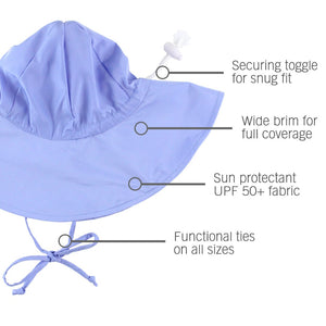 Keep them cool and protected from the sun's rays in this UPF 50+ sun protective hat for babies. Made of light-weight fabric and held secure with comfortable straps to tie under their chin, this baby sun hat is perfect for full days at the beach lake or pool!