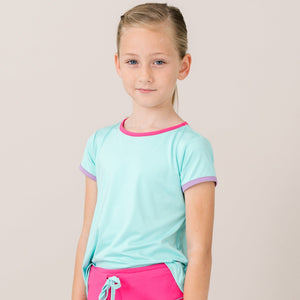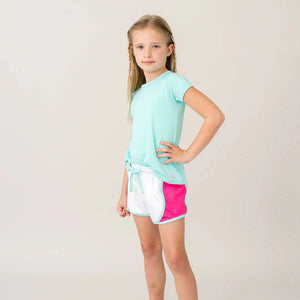Your little girl will love the Tiffany Skort in Power Pink, Totally Turquoise piping , welting, and undershorts. This skort, with its playful contrast, is perfect for sunny days and sporty adventures.