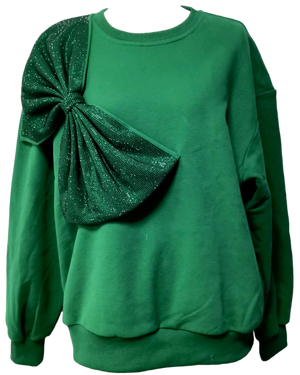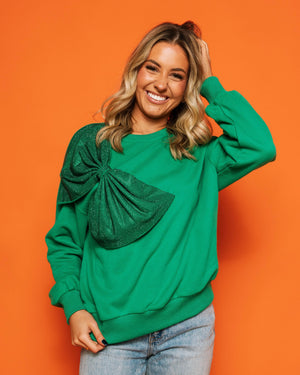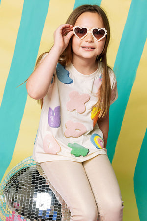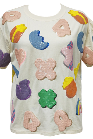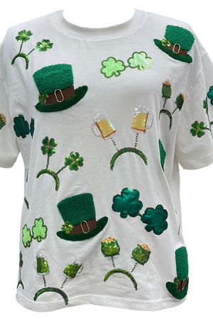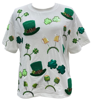 Queen of Sparkles- White & Green Sequin Flower Shamrock Tee- White