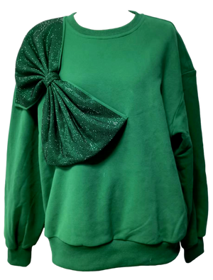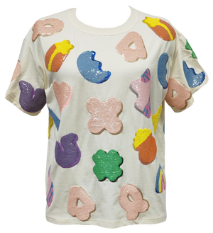 White & Green Sequin Flower Shamrock Tee- (Women's)