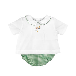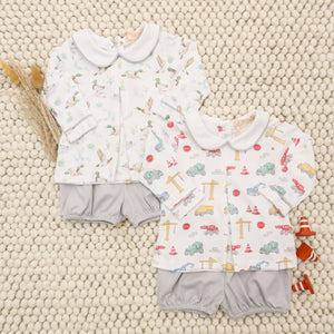 Dress your little gentleman in timeless charm and playful style with our adorable bloomer and diaper set collection! Perfect for tiny adventurers and curious explorers, these carefully crafted pieces are as comfy as they are cute, featuring classic designs and whimsical touches. Whether it's a special occasion or everyday fun, this collection brings effortless sweetness to your little one's wardrobe.