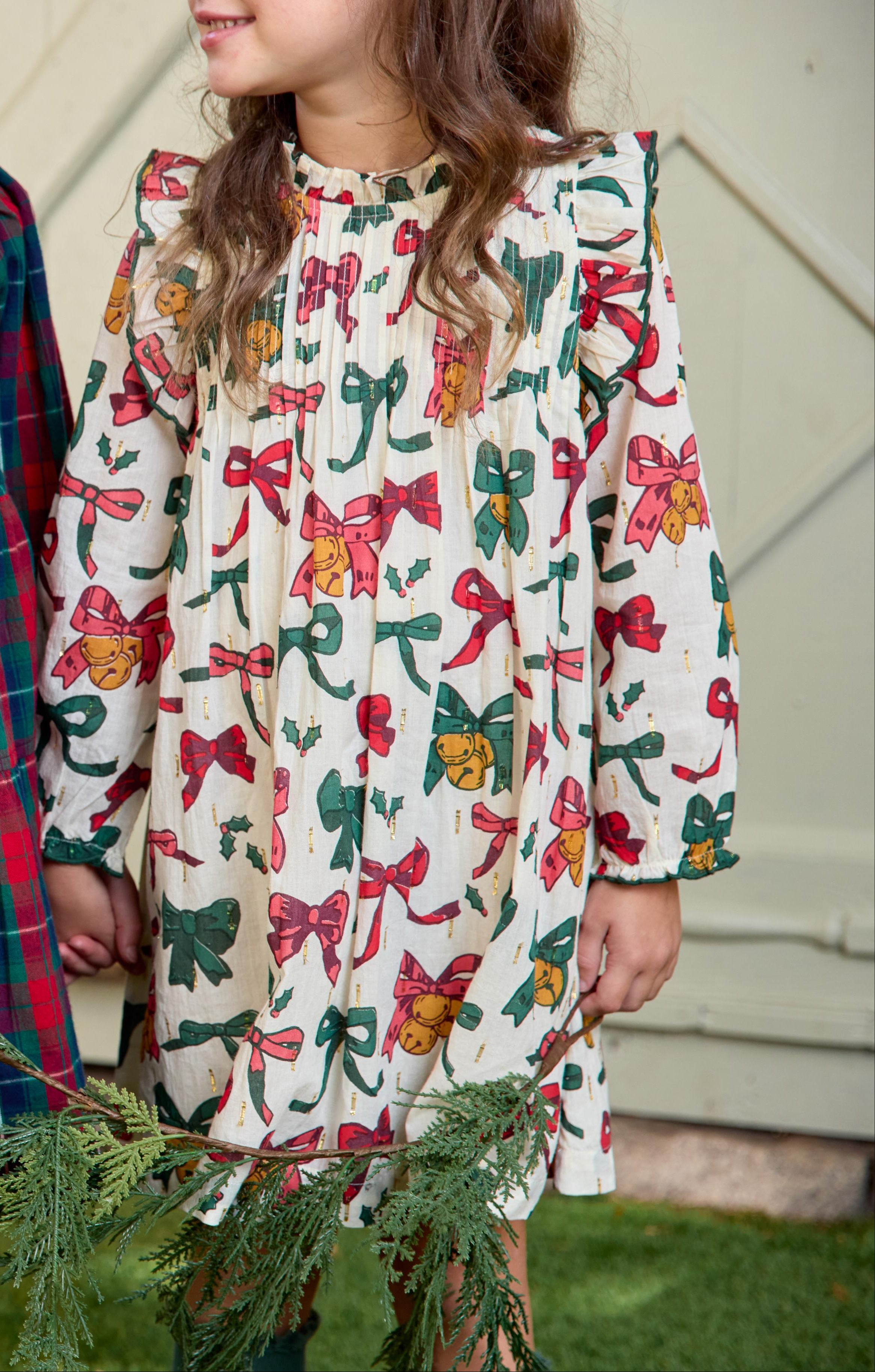Pink Chicken- Girls Jaipur Dress - Christmas Bows and Bells- christmas bow and bells
