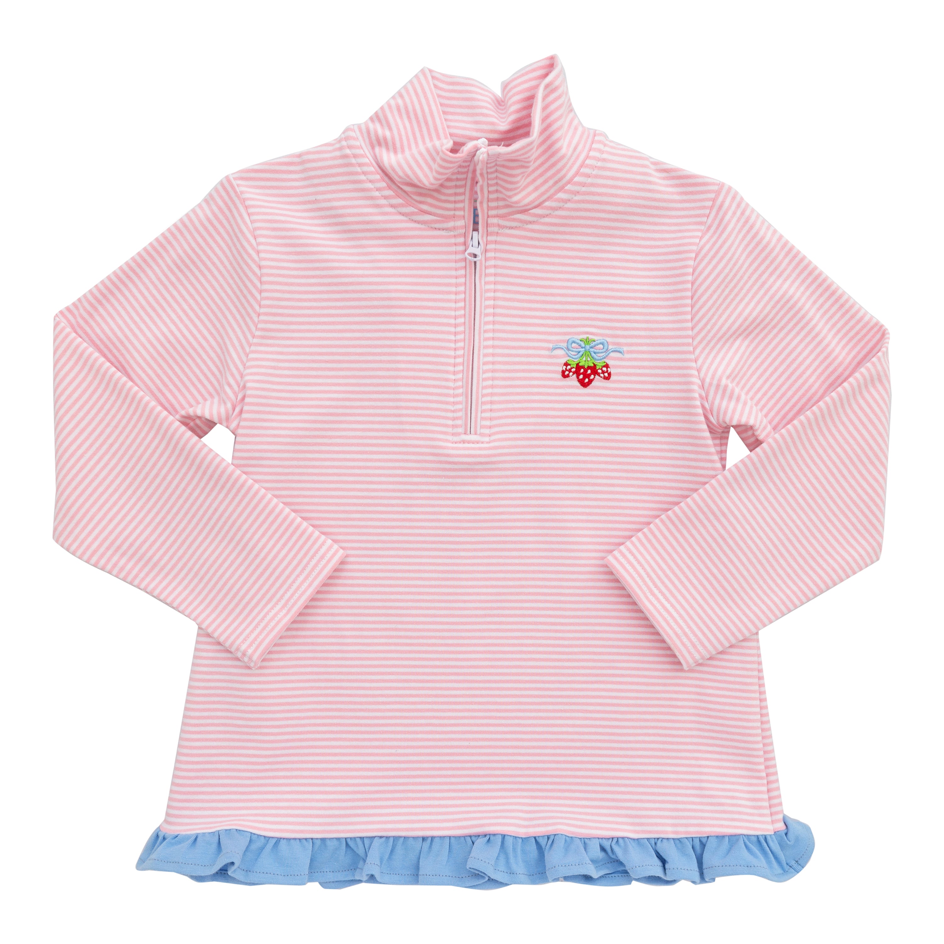 1/4 Zip Ruffle Pullover- Strawberries