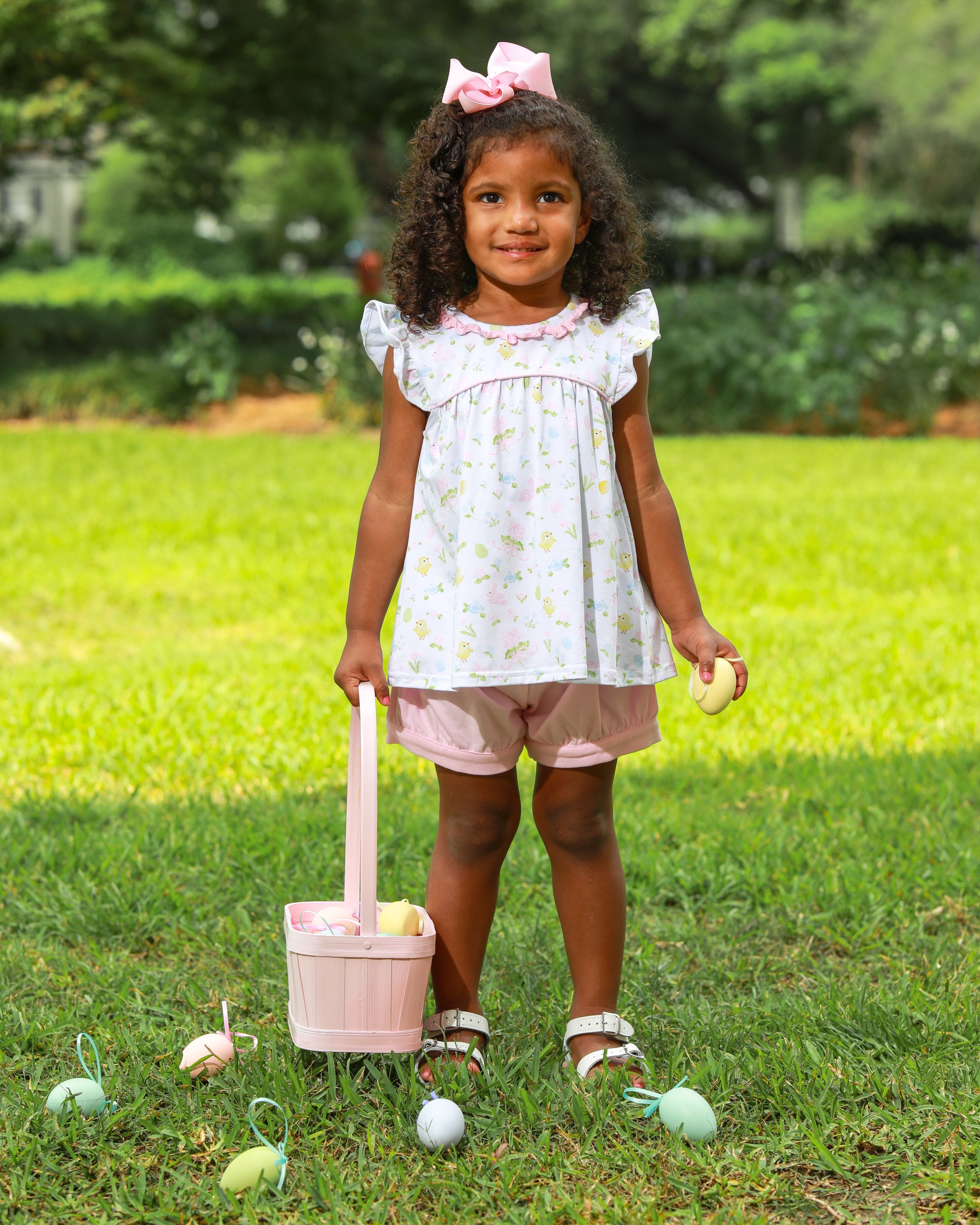 Hop into Easter fun with this adorable short set! Featuring a