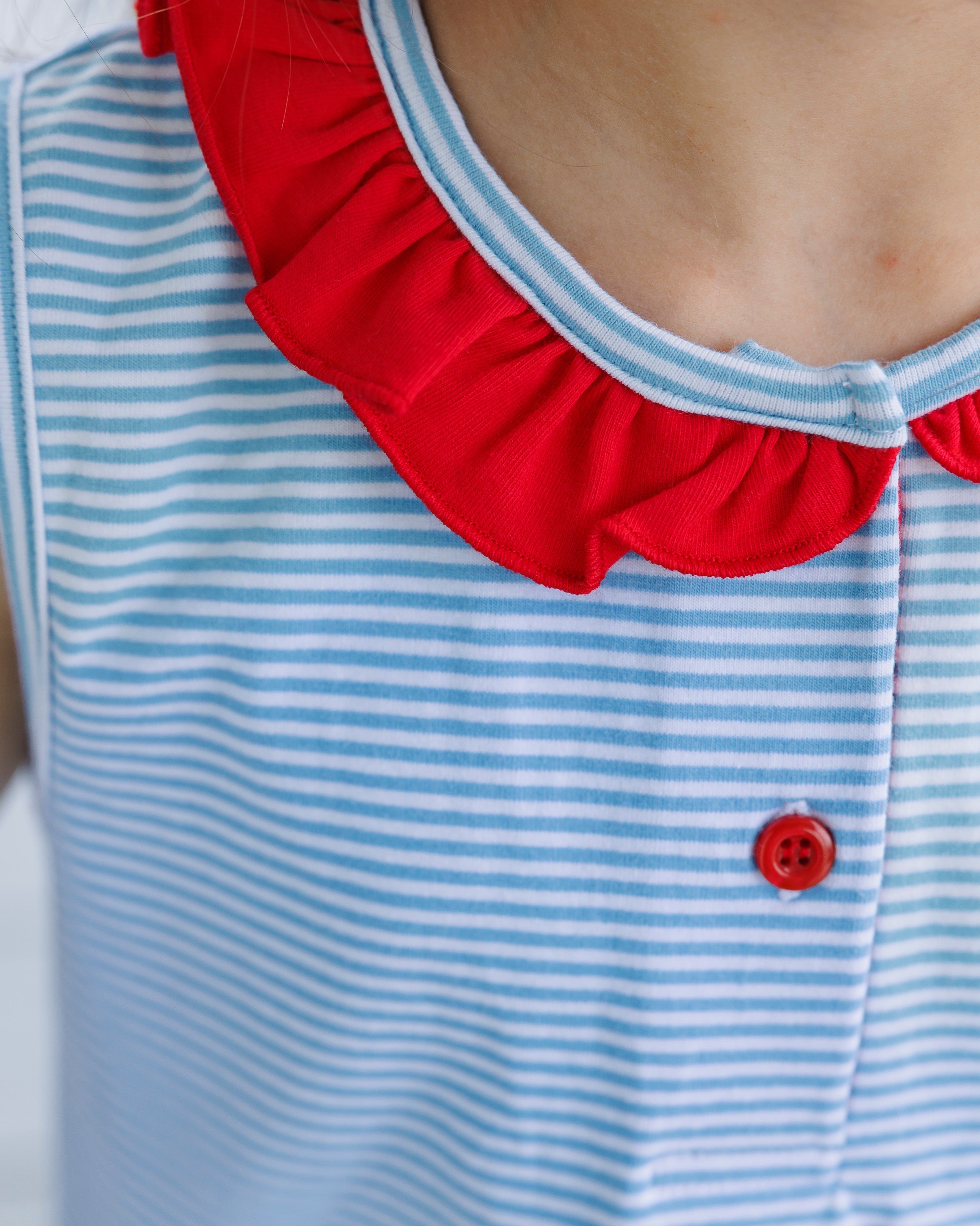 Trotter Street Kids- Nora Short Set- Cornflower Stripe/Red