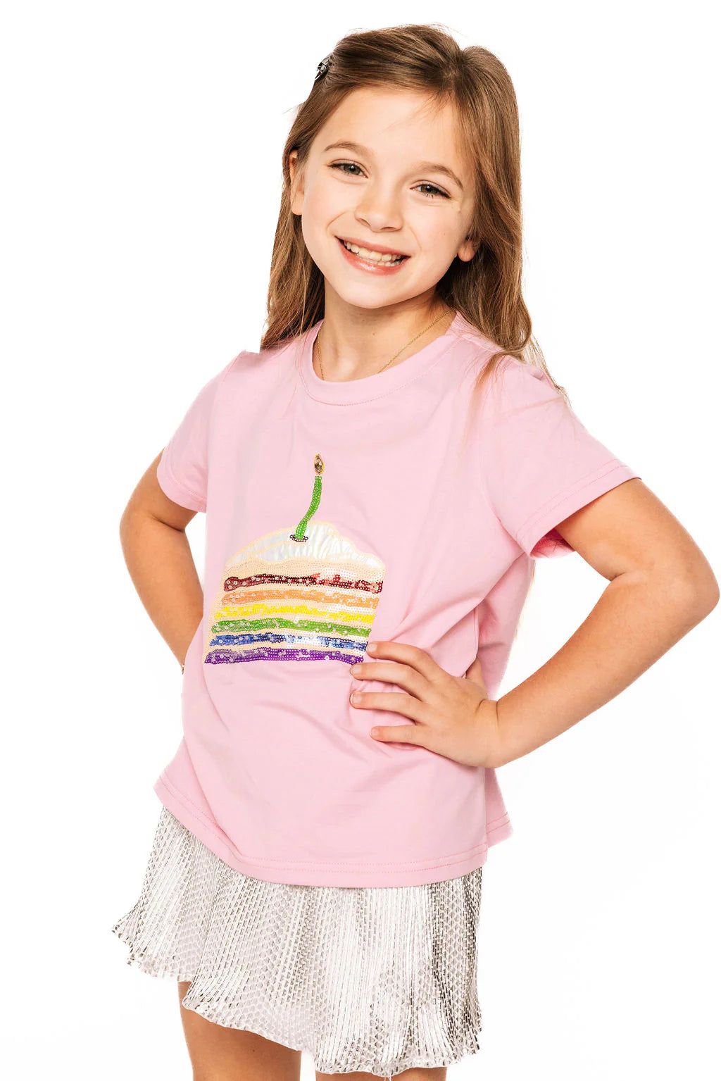 Celebrate in style with this adorable kids pink tee featuring a vibrant rainbow cake slice design—perfect for birthday parties and festive occasions. The soft, comfortable fit keeps little ones happy all day long, whether they're blowing out candles or dancing at the party. A fun, eye-catching graphic that makes every birthday feel extra special!