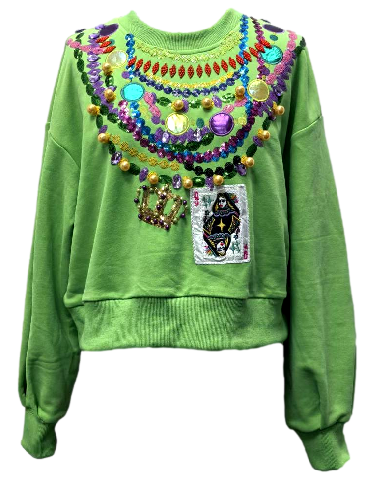 Queen Mardi Gras Beads Sweatshirt- Bright Green