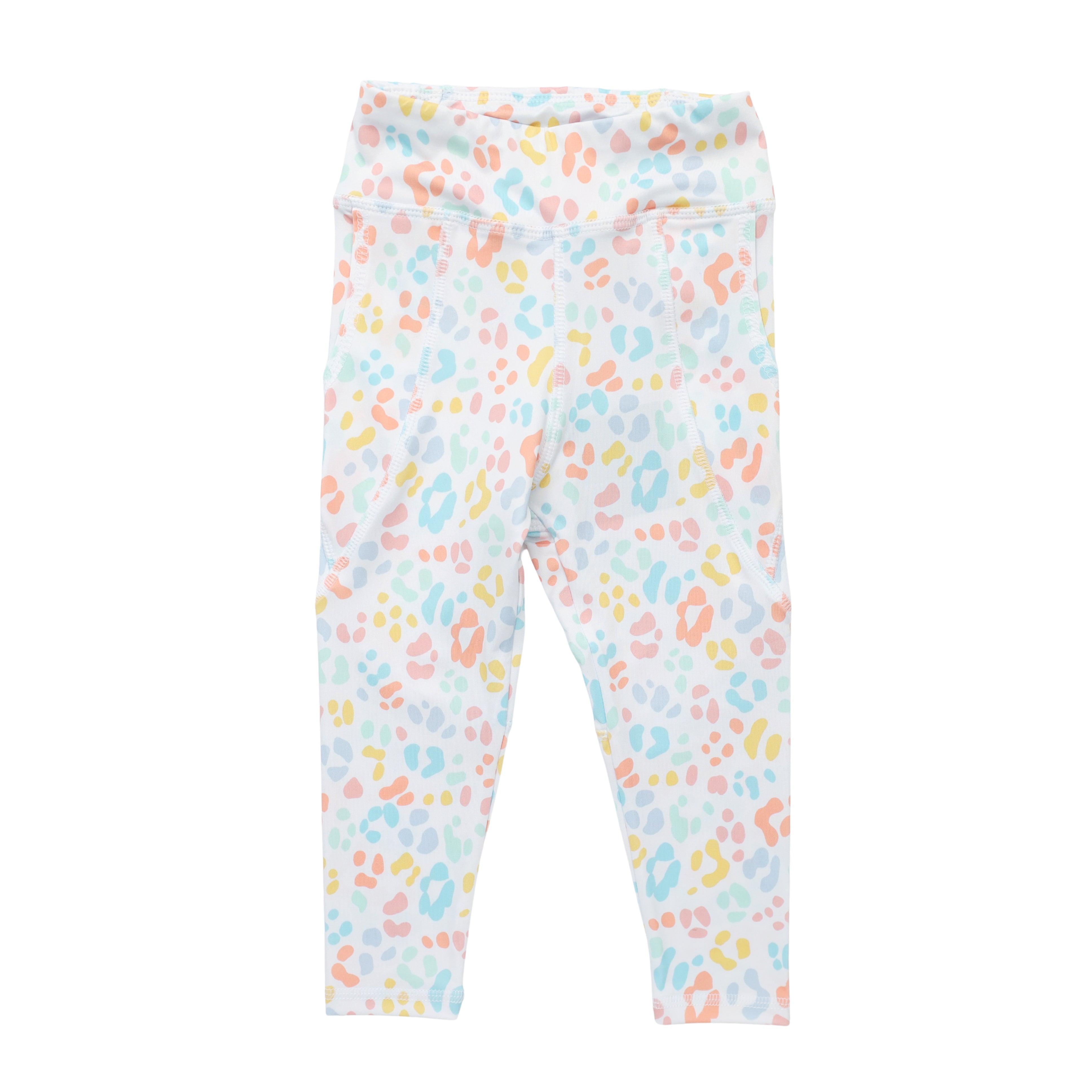 Brighten up her day with these multi colored leopard print athletic leggings. Made with stretchy fabric for comfort and performance. Bold, fun, and built to move—perfect for play, practice, or everyday wear.