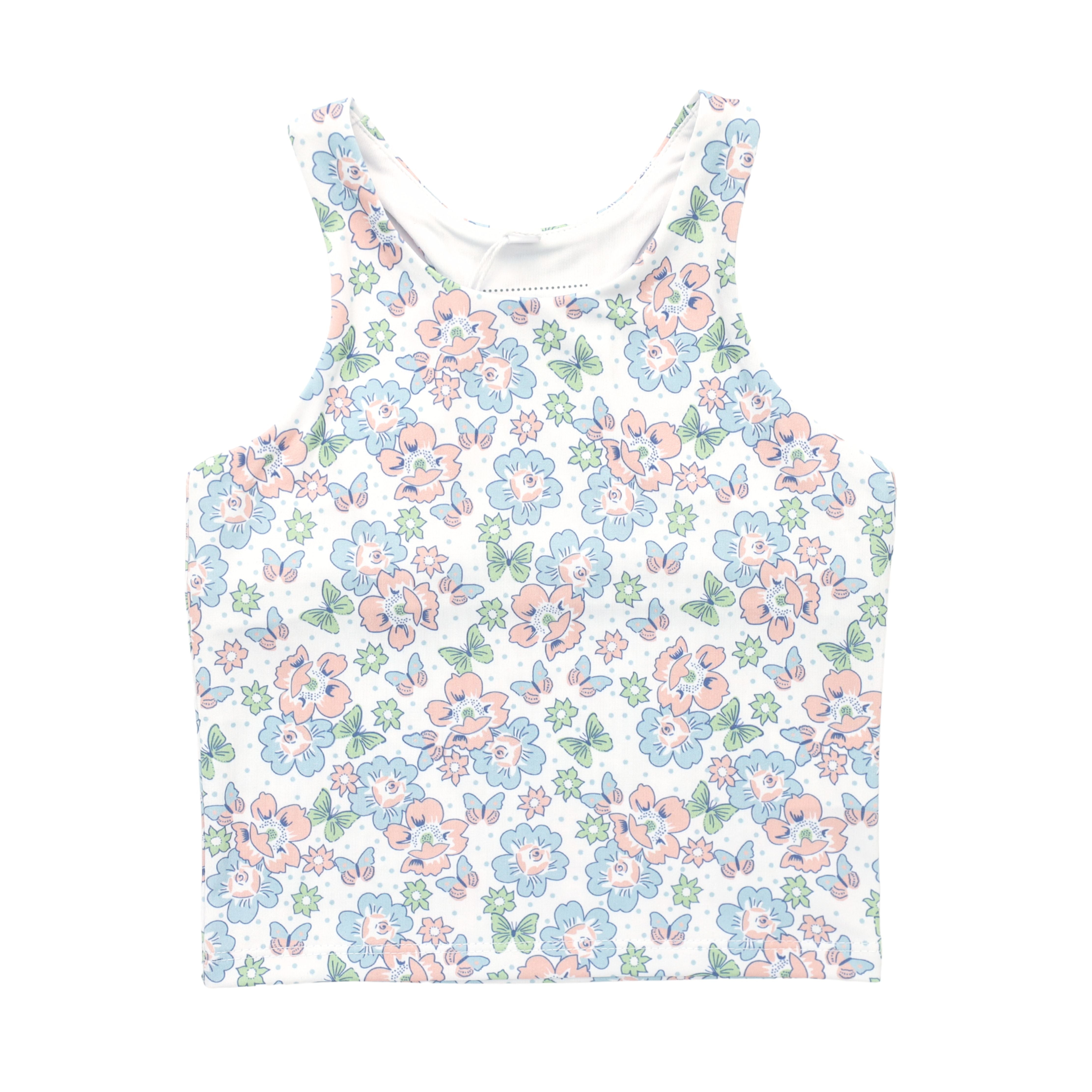This athletic tank top in the butterfly floral print is built for movement and all-day comfort. Made with soft fabric to keep her cool and dry. Perfect for practice, play, or layering under her favorite activewear.